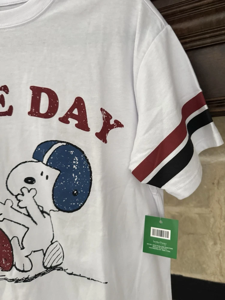 🏈 Celebrate your love for sports and Snoopy with this Peanuts® Snoopy Game Day Football T-Shirt. 🏈 This white unisex small T-shirt features short sleeves with striped accents and a crew neck. 🏈 The lightweight cotton blend material makes it perfect for summer, fall, and spring. 🏈 Featuring the beloved character Snoopy, this t-shirt is a must-have for any Peanuts fan. 🏈 The shirt is made by Freeze and is a regular fit. It is perfect for any sports-themed event or casual wear. 🏈 Get your hands on this charming t-shirt today! 🏈 Brand new with tags. Smoke free environment. 🏈 NOTE: Returns accepted, buyer pays return. Item must be returned in brand new, un-used condition with all tags attached. 🏈 Please view photos for closer inspection and more details. Thanks for shopping 🏈