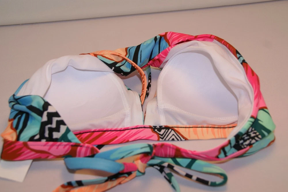 Material is same as pictured, cut of material positioned differently on swimsuit than in the picture. CLEAN WATER BIKINI TOP Brand New Size M Tropical Bright colors, Floral Print. Very Pretty! These colors will make you summer tan pop. This is a Clean Water Bikini Peek-a-Boo High Neck Top Tie in Back Adjustability. Sewn In, Slightly Padded Cups. Hand Wash Cold Separately Only Non-Chlorine Beach if needed Line Dry in the shade Do not Iron Do Not Dry Clean 88% Polyester 12% Elastane Lining is 100% Polyester Shipping I do offer combined shipping for multiple purchases, if safe to do so. I use eBay calculated shipping rates based on location, package weight and size.