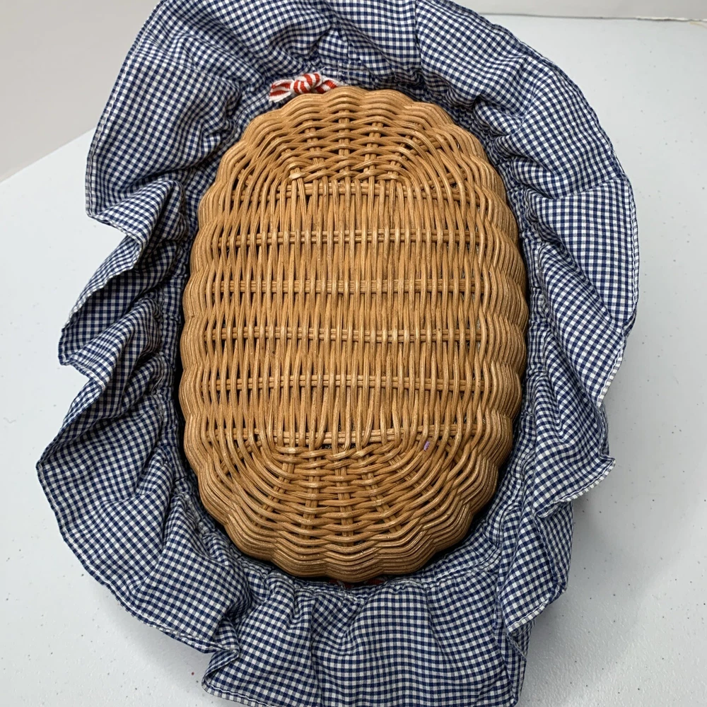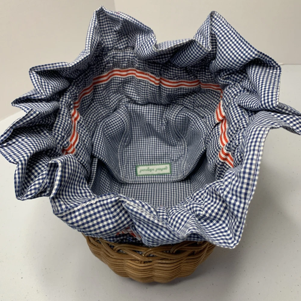 Blue checkered bassinet from Penelope Peapod. No doll included. See how it converts to bag/purse in pictures. See all photos