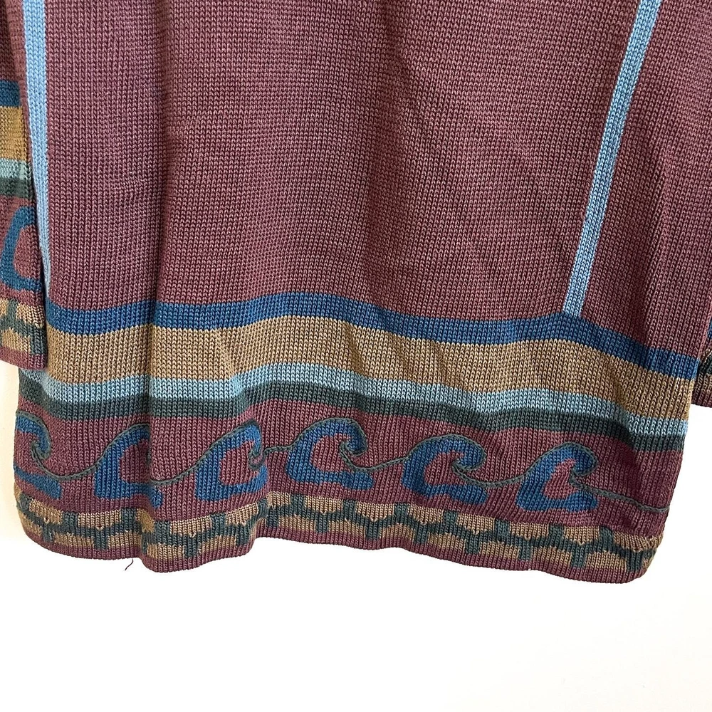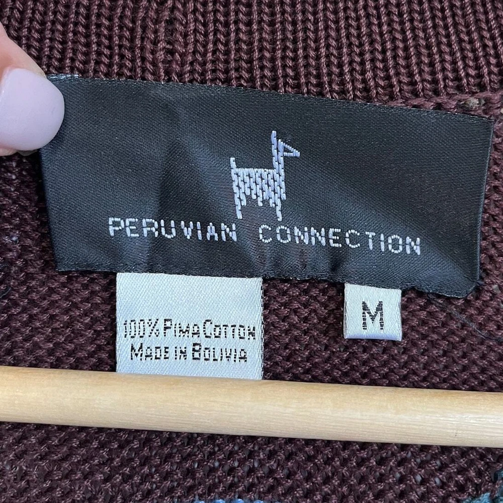 Western Southwestern Open Front Knit Long Sleeve 100% Pima Cotton Peruvian Connection Boho Moroccan Colorful Sweater Duster Jumper Jacket Tunic Kimono 100% Pima Cotton Made in Bolivia Thick heavy tight knit open front sweater Beautiful rich fall colors of brown teal and green Hand wash Sz Medium armpit 21 sleeve 21 length 31 Beautiful condition with tag detached on one side see pic