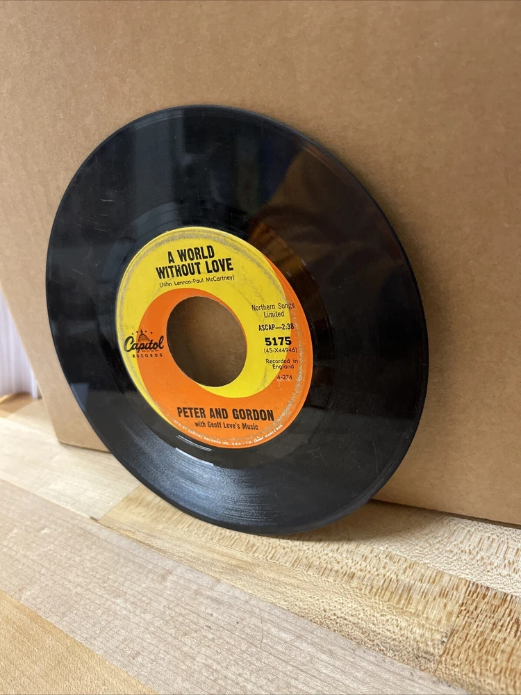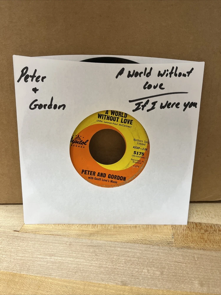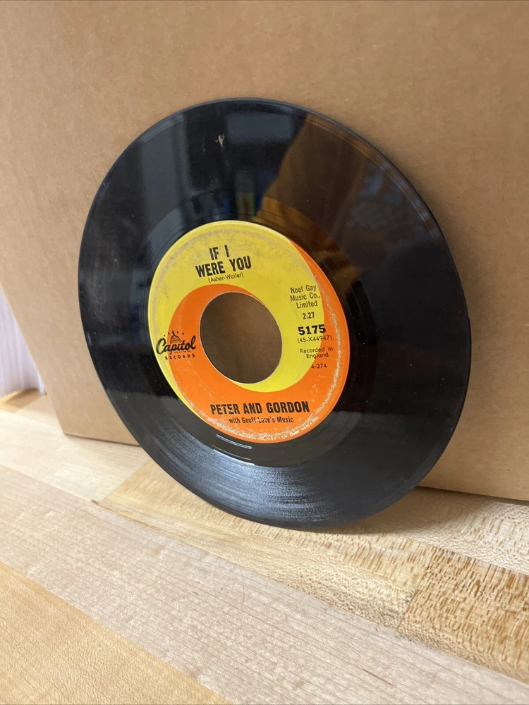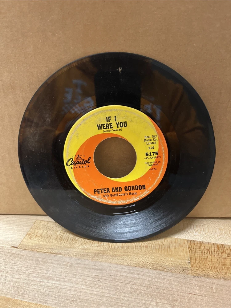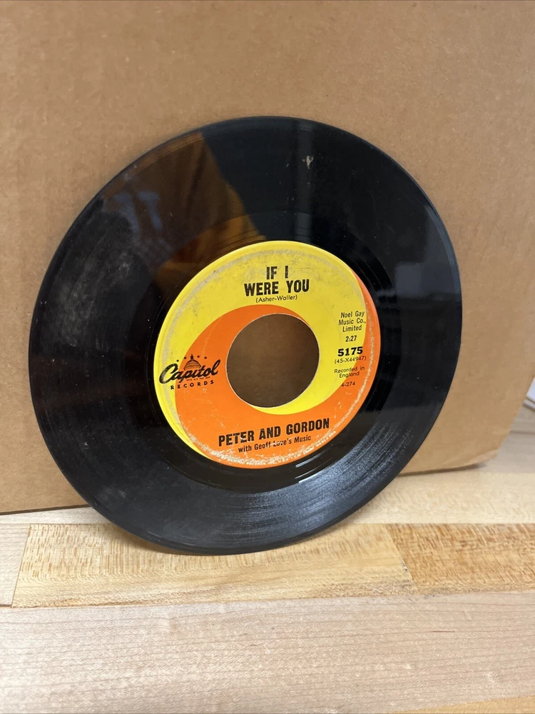 This vinyl single by Peter and Gordon titled "If I Were You / A World Without Love" is a must-have for any rock 'n' roll fan. Released by Capitol Records, the 7" record has a speed of 45 RPM and comes in a paper sleeve case. The record grading is Very Good (VG) and the material is vinyl. The song "If I Were You" is a classic rock hit that will transport you to a different era. The record label and release title add to the collectability of this piece. This item is perfect for adding to your vinyl record collection or as a gift for a fellow music lover. Condition is very good See pics for details on the condition of the item Shipping $4.99
