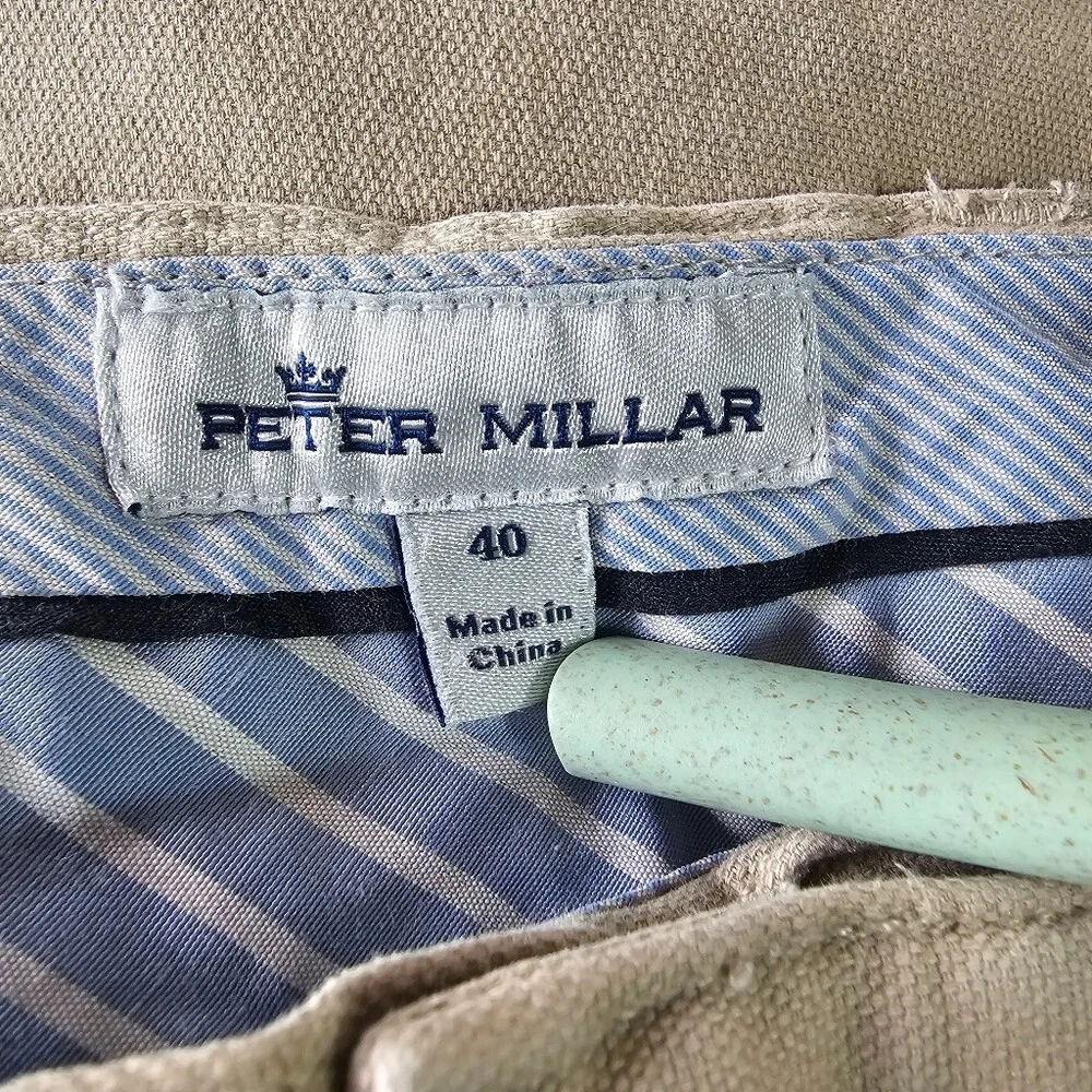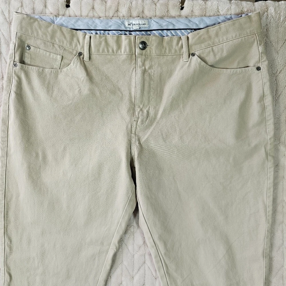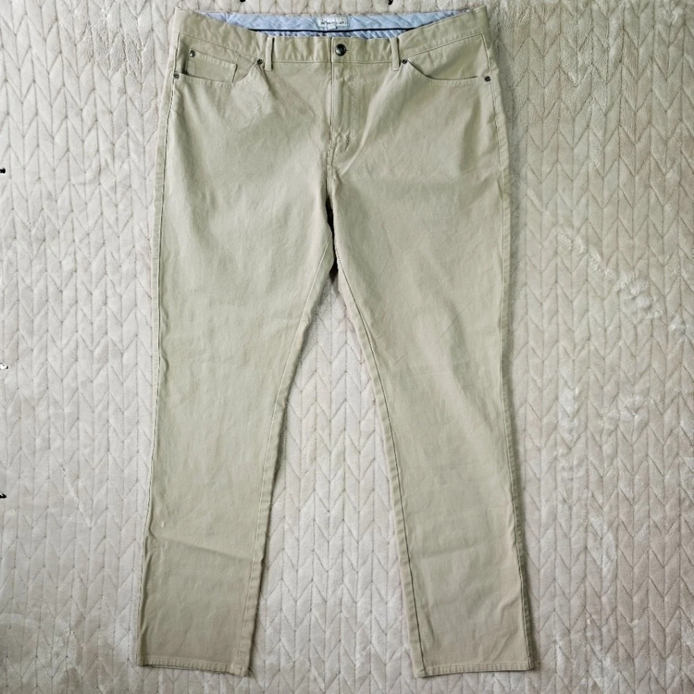 Classic pair of high quality khaki canvas pants. In a size 40 with a 32" inseam. In excellent pre owned condition, has a small bleach spot on the front of the leg and the back of the leg, I show the spots in the photos. See photos for full details.
