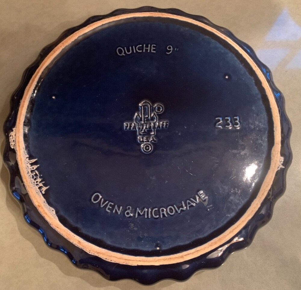Gorgeous vivid cobalt blue! Offered is a 9" glossy finish quiche/pie/baking dish with crimped edges interior and exterior. This dish is in excellent condition. Please note in the last two photos the process of artisan pottery produces natural ceramic markings, drips. Measures 9" diameter x 2" deep. Fast shipping, quality packed, smoke-free household, trackable. Thanks for looking :)