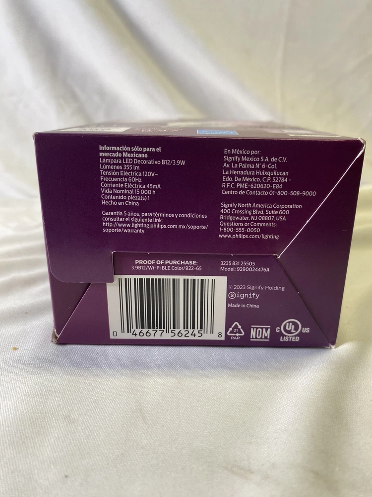 Philips Smart Wi-Fi LED 40-Watt B12 Candle Light Bulb, Frosted Dimmable Color