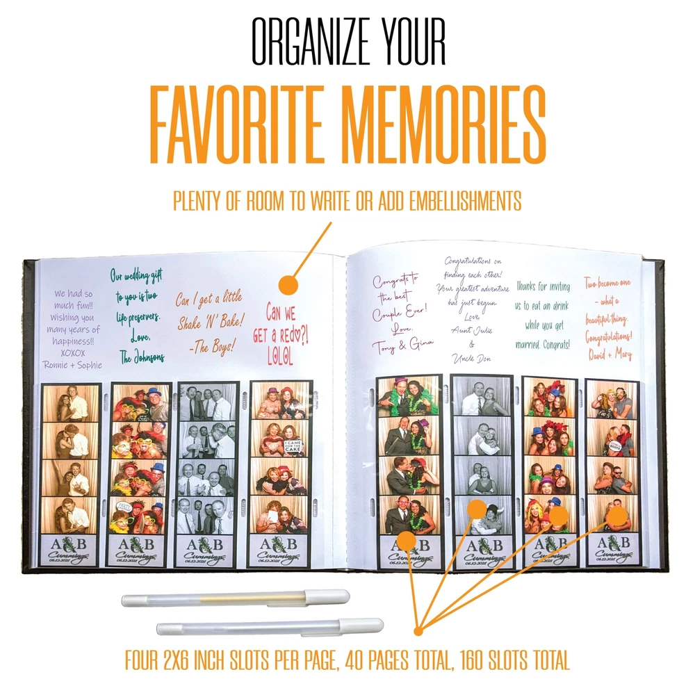 Photo Booth Nook Scrapbook Album,Scrapbooking Journal with Black Leather Cover,40 White Pages, 2x6" Cover Picture Slot & Photo Strip Inserts, Graduation, Anniversary Photos (10 count) Bulk CAPTURE THE MOMENT - Dive into luxury with our black leather photo strip album. Every laugh and pose is a treasure in this elegant keeper of memories. It’s your story's luxurious home. PERSONALIZED TOUCHES - With 4 slots per page and space for heartfelt messages above each, our photobooth album book invites guests to leave their mark, transforming it into a personalized heirloom. SHIMMER AND SHINE - Let your memories dazzle with our included silver and gold metallic gel pens. It's more than a photo booth photo album —it's a vault of precious moments. ADD TO CART now. TIMELESS PROTECTION - Safeguard your precious memories with our 2x6 photo strip album's protective sleeve, a guardian against time, ensuring your moments are preserved forever in pristine condition. FRONT COVER SPOTLIGHT - Our photo booth scrapbook album's front cover cut-out is your canvas; spotlight your favorite strip, crafting a personal touch that beckons a trip down memory lane at a glance. Step into a realm where each memory is a jewel with our Photo Booth Album, a masterpiece designed to cradle the laughter, tears, and joy captured in your photo booth adventures. Crafted from the most luxurious black leather and paired with thick, sumptuous black cardstock pages, this album is not just a holder of memories—it's a gateway to your most cherished moments, preserved in elegance and style. Within the pages of this magnificent Photo Booth Album lies the potential for infinite stories, laughter encapsulated in 2x6 photo booth strips. Each page generously offers four slots, surrounded by space ripe for the heartfelt messages of friends and family, making every flip through this album a journey through joyous times. Adorning this treasure are two metallic gel pens in gold and silver, turning signatures and anecdotes into glimmering reminders of a day unlike any other. These pens are not mere writing tools; they're wands that breathe life into the memories enshrined in your Photo Booth Album. Fear the passage of time? Our Photo Booth Album is encased in a protective plastic sleeve, ensuring that its beauty and the memories it safeguards remain untouched by time's relentless march. The prized feature is the album's front cover—a dedicated space to parade your favorite photo strip. This isn't just a feature; it's a declaration, a spotlight on the moments that define us, beckoning us back to relive the magic encapsulated within. The Photo Booth Album stands as a sentinel of celebration, perfect for weddings, birthdays, graduations, or any momentous occasion that deserves to be remembered and revered. Elevate your memories; let them not fade into the shadows. Embrace the Photo Booth Album, where every photo strip is a chapter, every message a testament to moments of unbridled joy. Claim this emblem of celebration and let it usher you into a world where memories are not just seen but felt, deeply and vividly. Shipping We offer FREE shipping on all orders! We use a selection of shipping services such as UPS, FedEx, USPS etc. We only ship to the lower 48 states, no APO/FPO addresses or PO Boxes allowed. Local pickups and combined shipping options are not provided at this time. Return You can return a product for up to 30 days from the date you purchased it. Any product you return must be in the same condition you received it and in the original packaging. Please keep the receipt. Payment We accept payment by any of the following methods: PayPal Please pay as soon as possible after winning an auction, as that will allow us to post your item to you sooner! Feedback Customer satisfaction is very important to us. If you have any problem with your order, please contact us and we will do our best to make you satisfied. Contact Us If you have any queries, please contact us via ebay. We usually respond within 24 hours on weekdays. Please visit our eBay store to check out other items for sale! Thank you for shopping at our store.