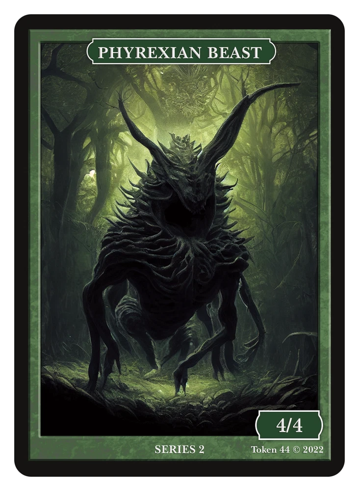 Phyrexian Beast 4/4 Token Digital art created by me using Mid-Journey This is token #44 in the series = SERIES 2 This token is limited to a print run. Once they are sold out the image will be retired forever and new art commissioned. Made the same Thickness as a Magic card Printed on quality 300GSM paper for the same feel as a Magic card Can be sleeved in perfect fit and double sleeved. See my other listings for the rest of the tokens in this series Look for them on Facebook under "Givememana's Tokens" I do combine shipping charges. At Checkout there should be an option to request total from seller. Or I can refund after you purchase. Just send me a message. Unfortunately Ebay doesn't proved a better method that I am aware of. Thank you.