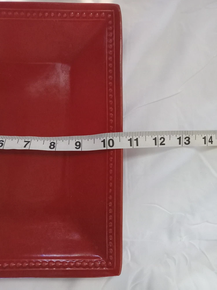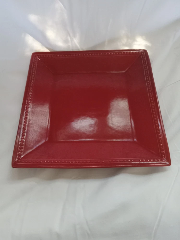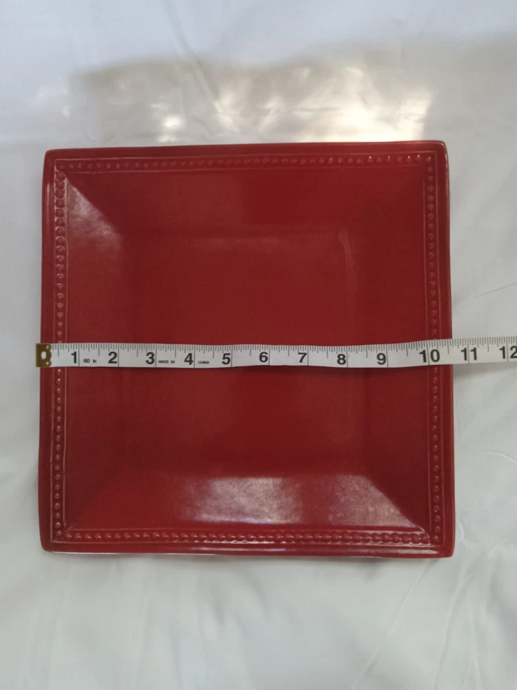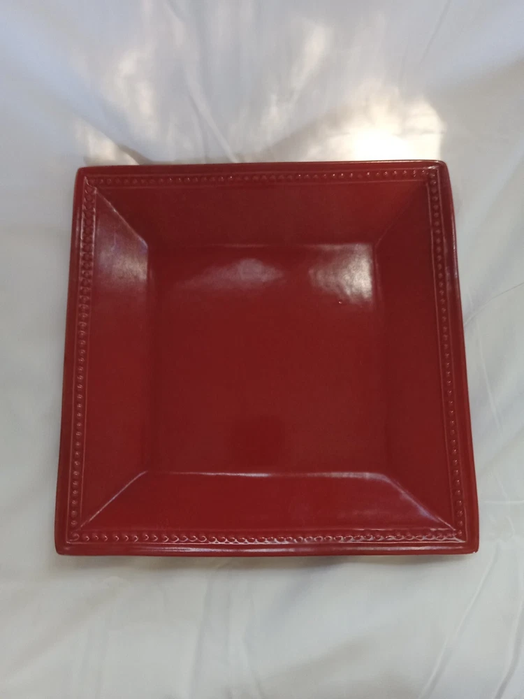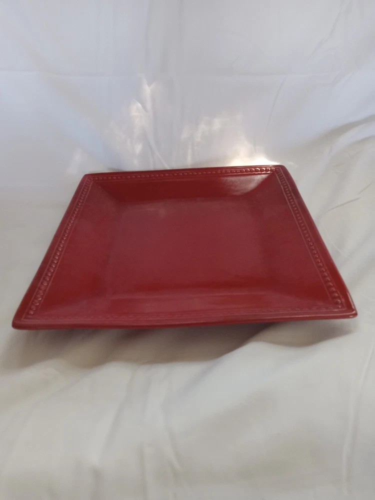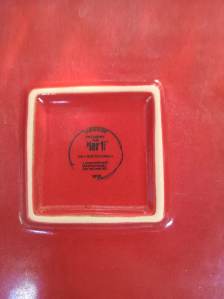 Add a touch of spice to your dinner table with this beautiful Pier 1 Imports SPICE ROUTE PAPRIKA Square Dinner plate. The 10.5" stoneware plate is perfect for all occasions and features a solid red color with a square shape. The plate is microwave and dishwasher safe, making it a convenient addition to your dinnerware collection. This original piece from China has a model name of SPICE ROUTE PAPRIKA and is perfect for adults. The plate is sold as a set of one and is ideal for serving your favorite dishes. Make your dinner more memorable with this stylish and functional plate.