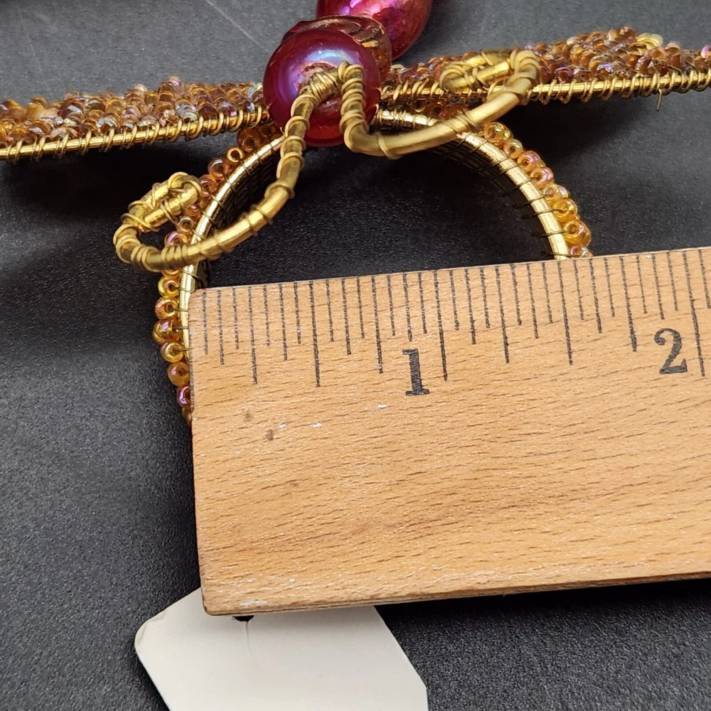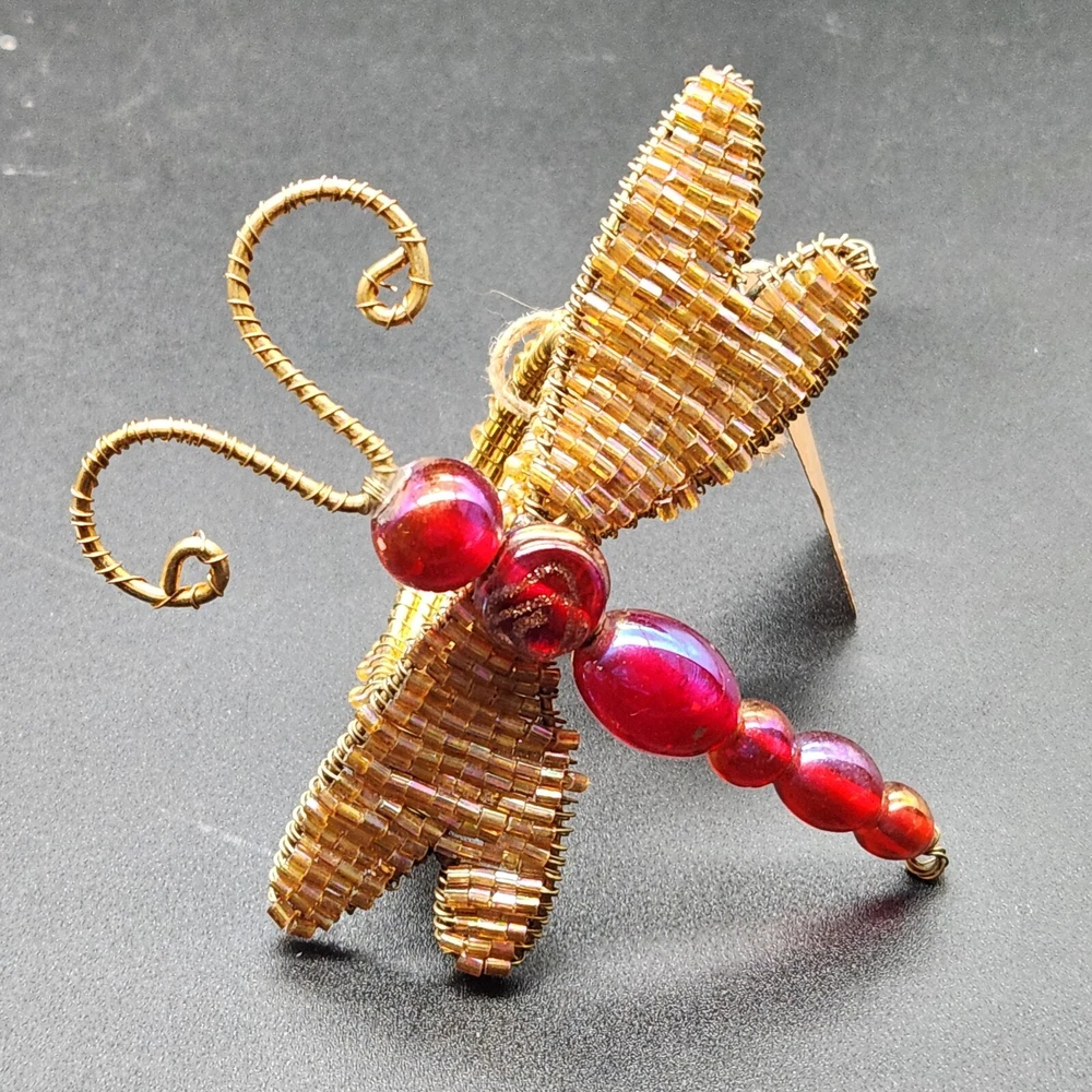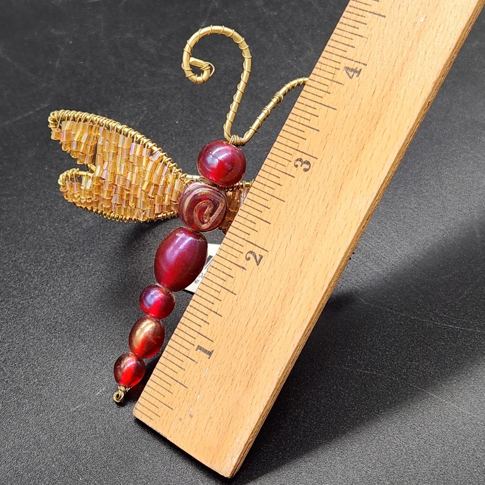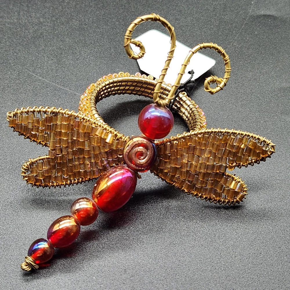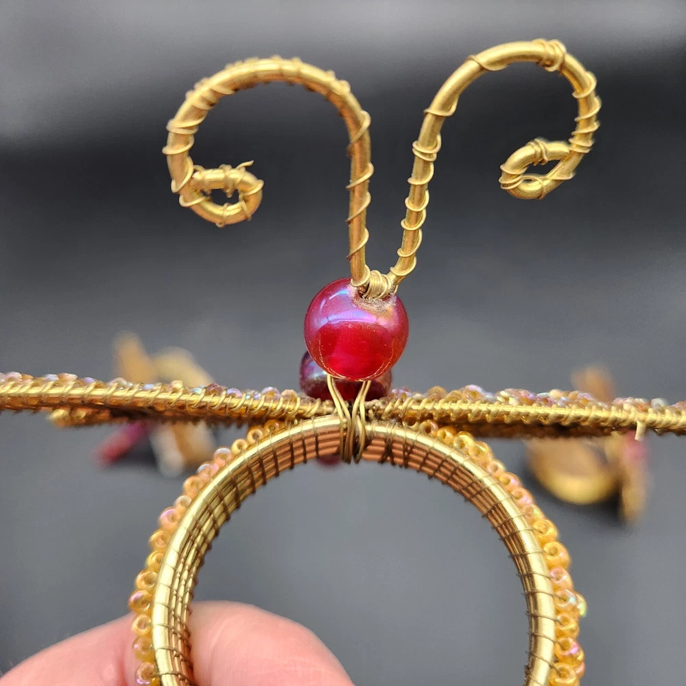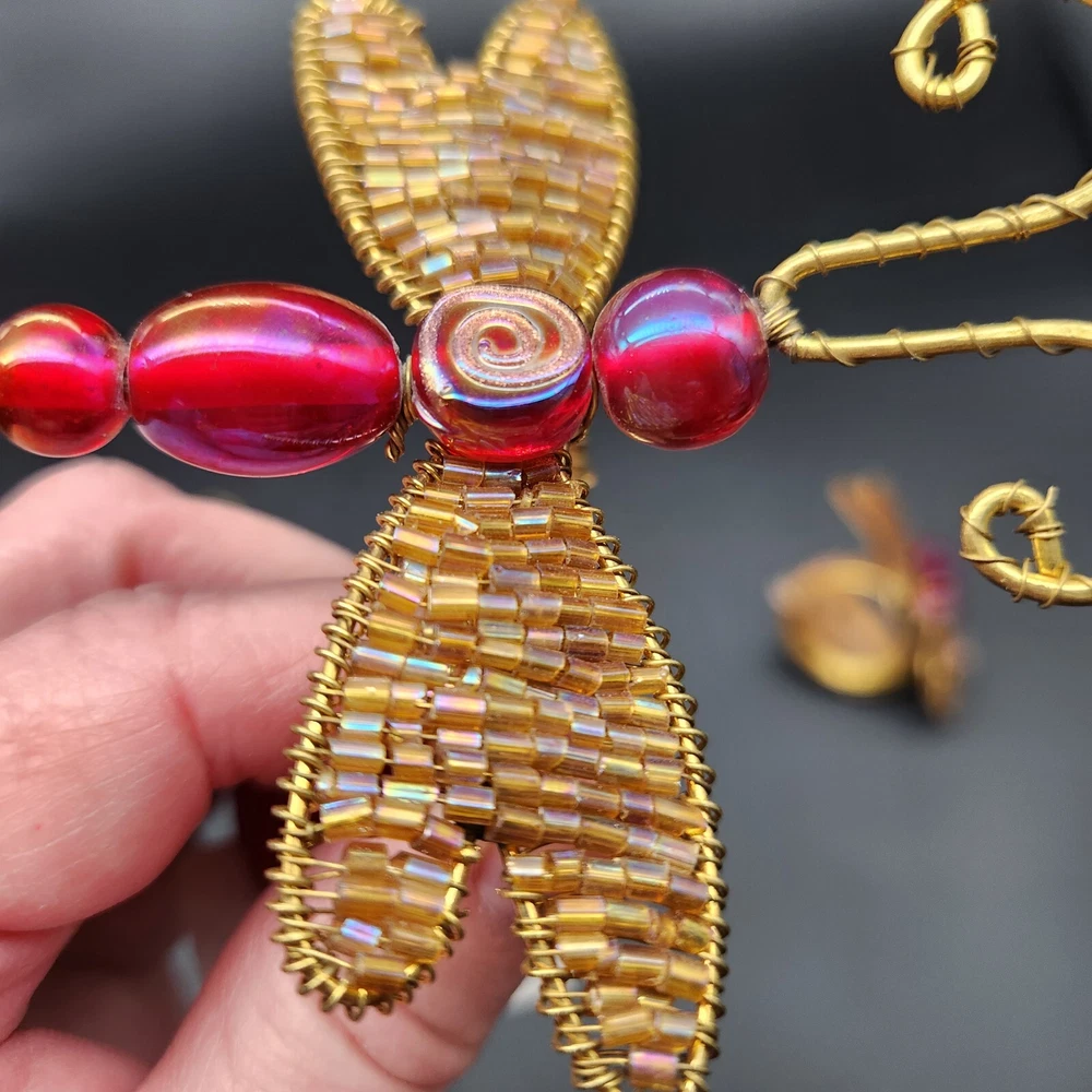 These napkin rings are like dragonflies with a serious bling addiction. They'll hold your napkins tighter than a dragonfly holds onto summer. Perfect for adding a buzzing flair to your dining table. • Intricate beaded design • Vibrant red and gold colors • Metal wire construction • Set of 6 dragonflies • Each measures approximately 3.75" long. Pre-owned but in very good condition. Original tags still attached. See photos for details.