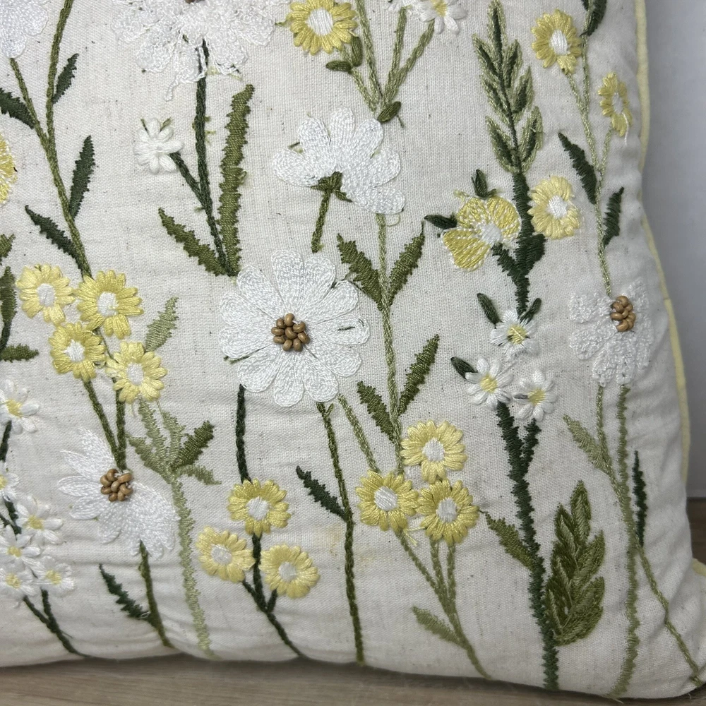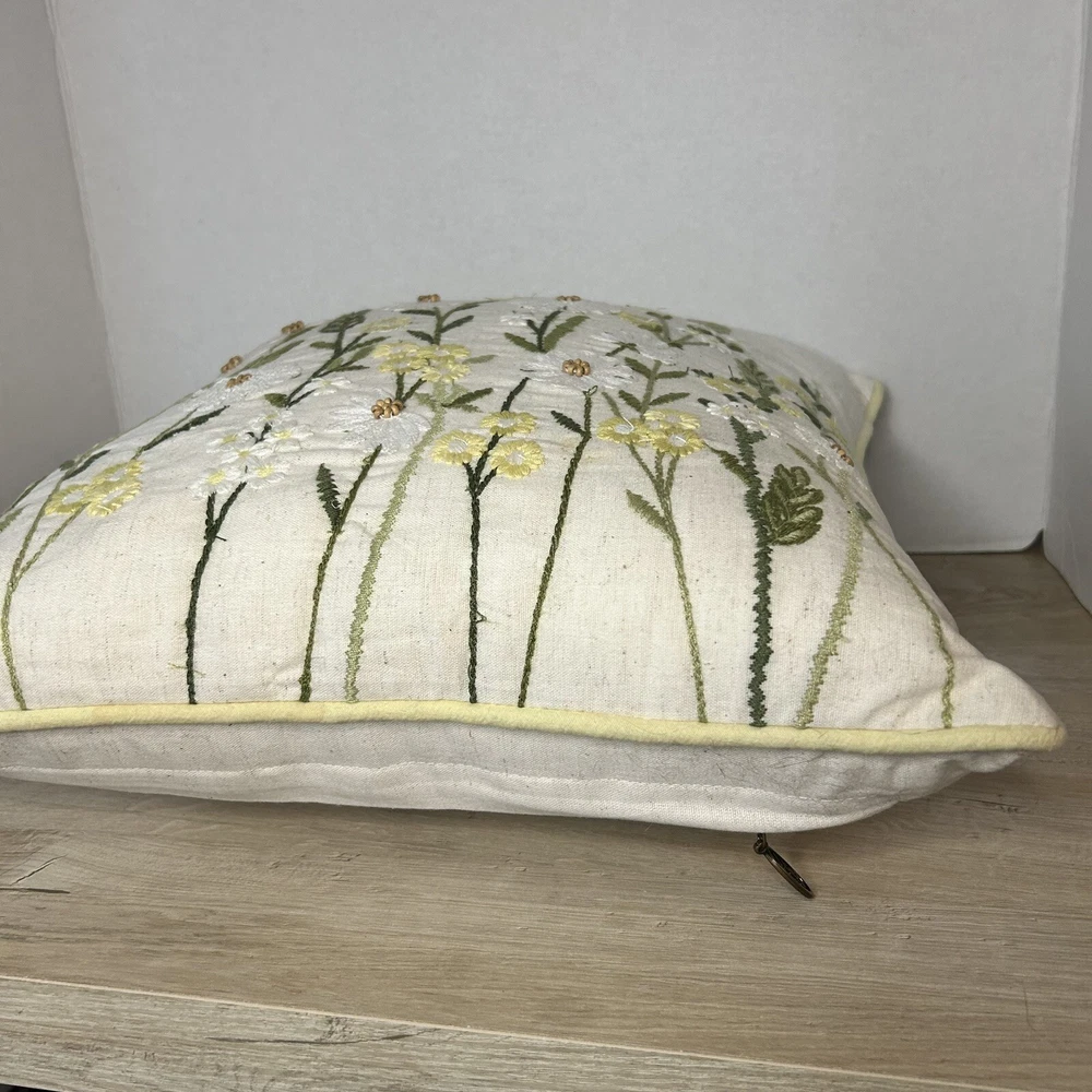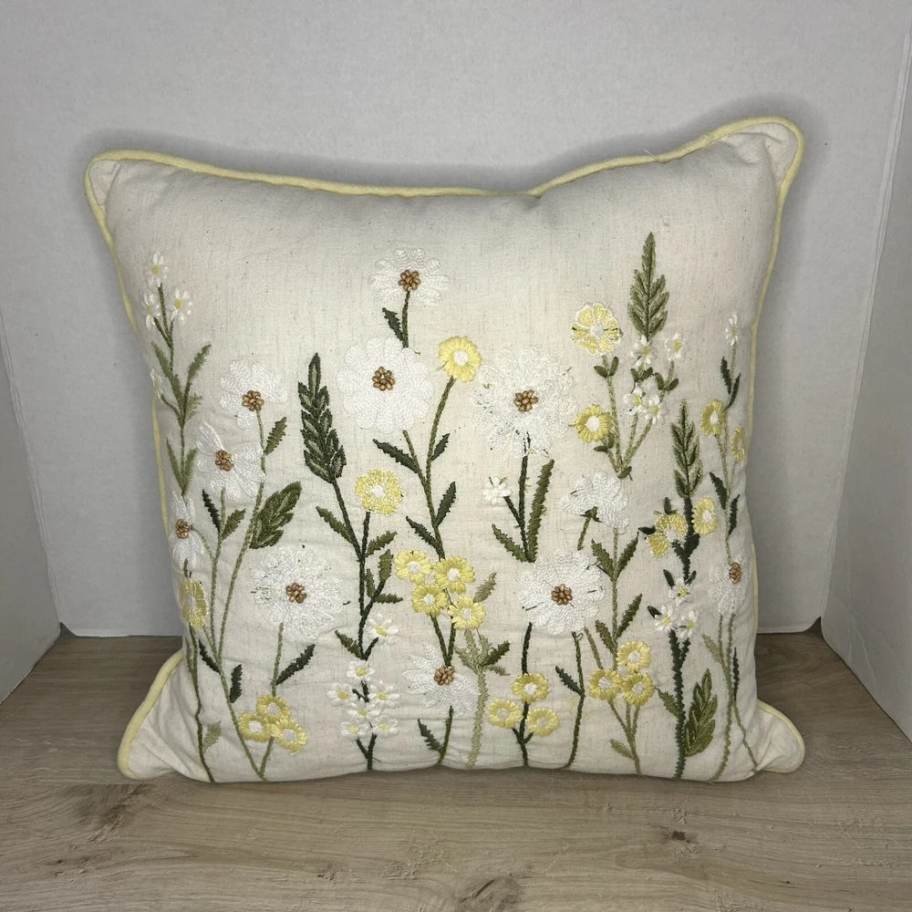 Pier 1 yellow and white floral daisies throw pillow. Measures 15” x 15”. In excellent condition.