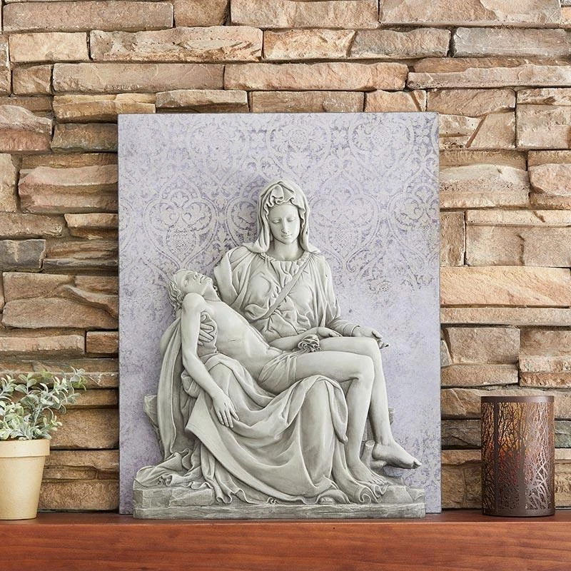 Pieta Resin Garden Wall Plaque Pieta Wall Statue Virgin Mary and Jesus Gift Pieta Resin Garden Wall Plaque Pieta Wall Statue Virgin Mary and Jesus Gift Click images to enlarge Description This exquisite plaque reflects the timeless beauty displayed in Michelangelo's original 15th-century sculpture. The serene statue, displaying the heartbroken tenderness of the Mother of Sorrows as she holds the body of her Son, is exquisitely sculpted in resin with a wooden back featuring a sawtooth hook. This poignant piece, which Michelangelo called the heart's image, will be a showcase devotional item in any home, garden, or church. Size: 21"x 26" x 5" Material: Resin Pieces /Package: 1 Collection: Avalon Gallery Track Page Views With Auctiva's Counter Images sell! Get Supersized Images & Free Image Hosting Get Auctiva's Listing Templates on your items with a few clicks.