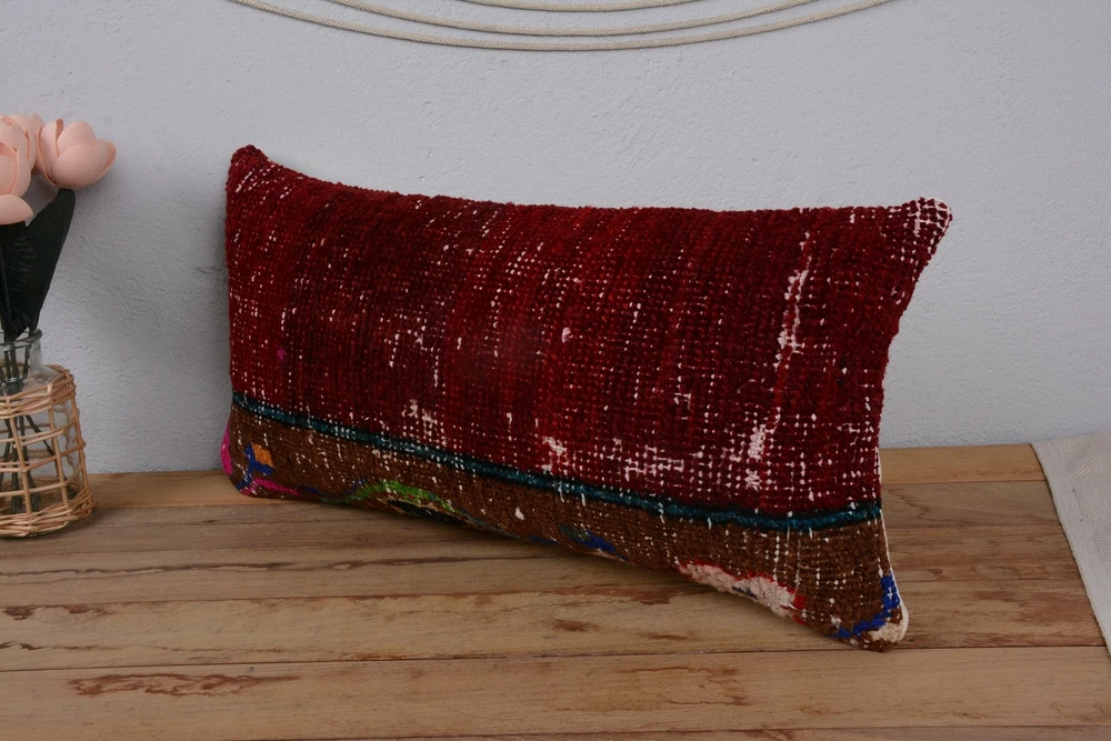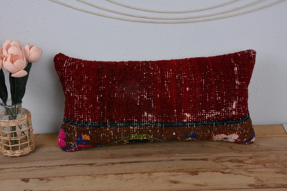 Pillow for Sofa, 12"x24" Red Kilim Pillow, Kilim Pillow, Kilim Pillows