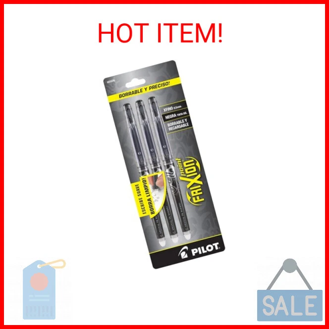 Pilot, FriXion Point Erasable & Refillable Gel Ink Pens, Extra Fine Point 0.5 mm, Pack of 3, Black - Stress-Free Writing: Write, erase & rewrite repeatedly without damaging your documents; Unique thermo-sensitive ink disappears completely with erasing friction - Innovative Design: Patented Synergy Tip technology delivers durability & incredibly smooth writing; Erasable gel pen delivers crisp, clean lines in the original capped design - Versatile: Perfect for editing, calendars and jotting notes in planners; Extra fine precision point lets you perfect every detail - Refillable & Quick Drying: Refills (sold separately) save you money; Quick drying ink prevents smudges & smears; Includes 3 black pens - Power to the Pen: Express yourself effortlessly with Pilot's line of innovative writing tools - including gel ink, erasable, rolling ball, ballpoint & fountain pens - plus highlighters, dry erase markers & more Payments We accept the following payment methods PayPal Support Our dedicated customer support team is here to assist you from 9AM to 5PM Monday through Friday, excluding public holidays. Should you reach out to us and not recieve an immediate response, it's likely due to a higher-than-usual volume of inquires. We want to reassure you that your concerns are important to us, and we're working dilligently to get back to you. Expect a response by the next business day at the latest. Your understanding and patience are greatly valued as we strive to provide you with the best support possible! Shipping All orders are processed within 5 business days. Shipping estimates may be shown on this listing by eBay, and these are often not an accurate reflection of our shipping times. If we are experiencing a high volume of orders, shipments may be delayed by a few days. Please allow additional days in transit for delivery. If there will be a significant delay in shipment of your order, we will contact you via message. Shipping rates & delivery estimates Shipping is often free, but if charges for your order apply they will be calculated and displayed at checkout.