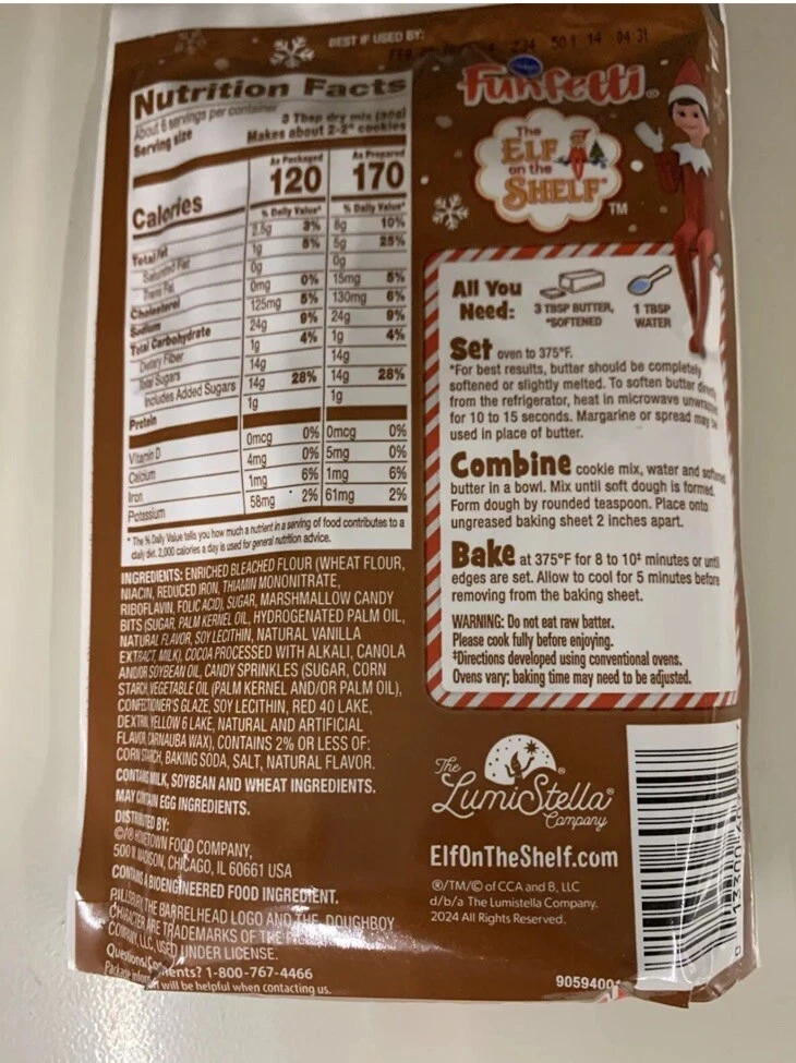 Add some festive cheer to your baking with Pillsbury Funfetti Elf On The Shelf Hot Cocoa Cookie Mix. This cookie mix is perfect for the holiday season and beyond, with its delicious taste and easy-to-follow recipe. Each bag contains everything you need to whip up delicious cookies that are sure to satisfy your sweet tooth. Made with high-quality ingredients, this baking mix is perfect for those who love to experiment with different flavors. The mix is suitable for pantry storage and has an expiration date of February 2025. Please note that this product contains allergens, so be sure to read the bag for contents. Get ready to indulge in the delicious taste of Pillsbury Funfetti Elf On The Shelf Hot Cocoa Cookie Mix.