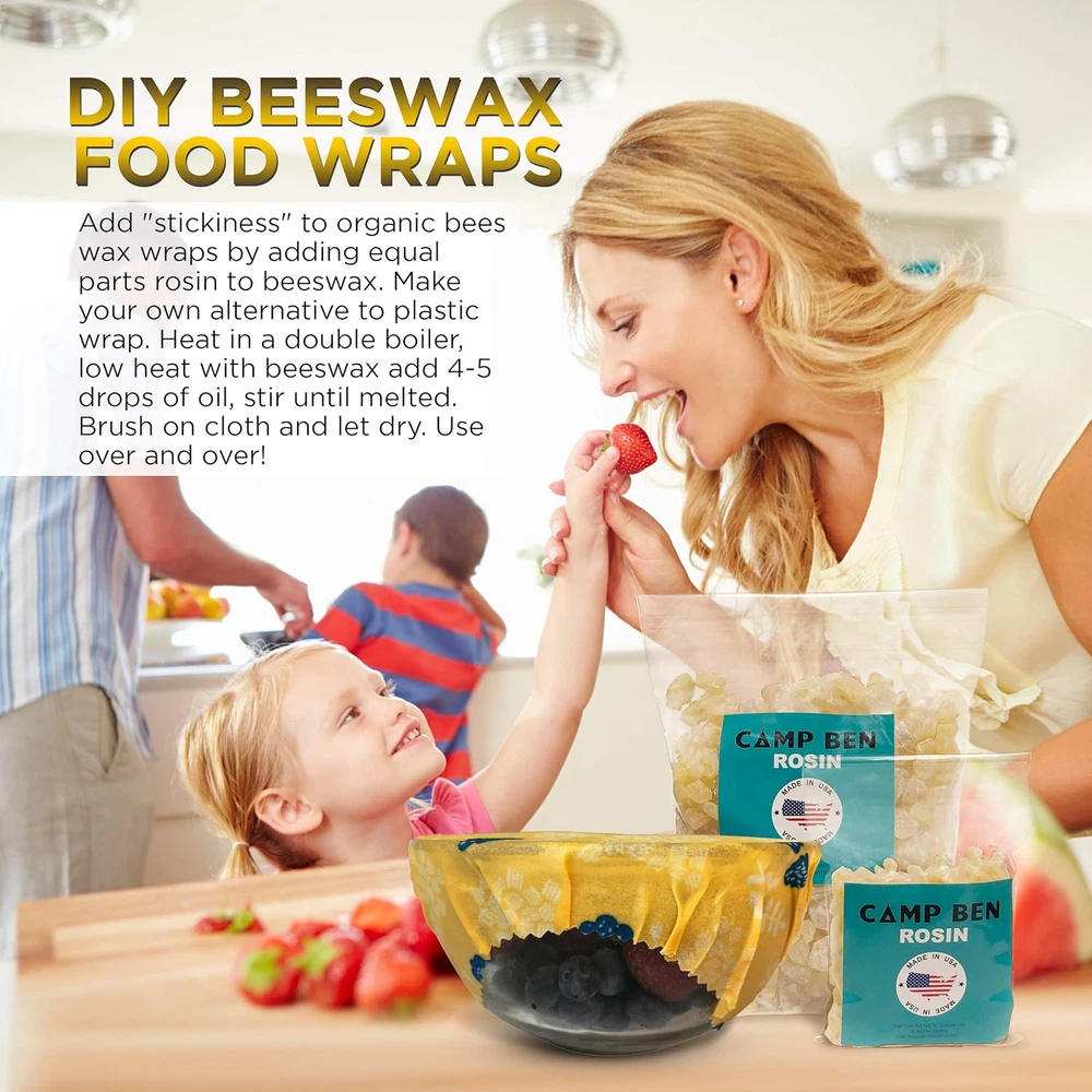 Store New Arrivals Add to Favorite View Feedback Contact Pine Rosin - Tree Resin - Making Beeswax Cloth Food Wraps, Gum Nugget Rock Form, Natural Grade Hand Grip Enhancer, Baseball, Softball, Rodeo Rough Bucking Stock, Bull Riding Description Part Number CB-082118-rosin-1 Number of Items 1 Package Weight 0.39 Kilograms Recommended Uses For Product Food Preservation, Food Storage, Sandwich Wrap Is Microwaveable No Product Dimensions 9"L x 6"W Item Package Dimensions L x W x H 7.9 x 5.1 x 1 inches Item Dimensions LxWxH 9 x 6 x 1 inches ✅ MADE IN THE USA 100% American made! Proudly selling US rosin. Experience that warm pine smell when heated. (It won't have that famous pine smell UNTIL heated.) ✅ DIY BEESWAX FOOD WRAPS - HOW TO MAKE BEES WAX WRAPPING Add "stickiness" to organic bees wax wraps by adding equal parts rosin to beeswax. Make your own alternative to plastic wrap. Heat in a double boiler, low heat with beeswax add 4-5 drops of oil, stir until melted. Brush on cloth and let dry. Use over and over! ✅ EASILY CRUSH OR MELT CAMP BEN PINE ROSIN Use in bulk rock form (not powdered) or press into powder by crushing with a hammer/mallet. Add CAMP BEN Pine Rosin - Tree Resin - to equal parts of beeswax for an easy melt. ✅ SPORTS HAND GRIP ENHANCER Improved Grip for baseball and softball bats, a better handle in tennis, stickier glove and rope for rodeo stock events like bull riding and saddle bronc. DRY HANDS ACCESSORIES - The ultimate sports grip! Product Description At CAMP BEN how we do anything is how we do everything. Meaning...that little things matter. We take great pride in our products! Camp Ben Beeswax Food Wraps MADE in the USA MADE IN THE USA - 100% natural rosin. Made in USA. CAMP BEN Natural Pine Rosin NATURAL PINE ROSIN - DIY Beeswax Food Wraps - Add "stickiness" to organic bees wax wraps by adding equal parts rosin to beeswax. Make your own alternative to plastic wrap. Heat in a double boiler, low heat with beeswax add 4-5 drops of oil, stir until melted. Brush on cloth and let dry. Use over and over! Easy Melt Rosin CAMP BEN ROSIN MELTS - CAMP BEN Rosin melts easily in a double boiler. If you don't have a double boiler, set a large metal bowl on top of a water filled saucepan. Use old kitchen pots and pans because rosin is sticky! Protect your area. Do NOT microwave rosin. Do It Yourself - Beeswax Food Wraps Create Your Own Beeswax Food Wraps with CAMP BEN Rosin - Reusable Natural Plastic Free Alternative - Kitchen Storage Food and Bowl Covers - Perfect for at home or on the go! All Purpose Sports Sticky - Stick that Hold! Get a Better Hold with CAMP BEN! - For a Grip That Won't Quit! - Better Hold in Sports - Want better hold while weight lifting? A little extra grip while rock climbing? Ideal tacky grip for gymnastics or dance. Improved Grip - Your Dry Hands Accessory - Forget About Sweaty Hands! - CAMP BEN Rosin is perfect for that little extra secret weapon grip in sports. Need that extra hold in golf, tennis, baseball, softball or lacrosse? We've got you covered! ABOUT US We offer the best prices around on high quality products. Our E-store includes media such as books, movies, music and games while offering electronics, toys, sporting apparel, clothing, tools, general home, garden items and more. SHIPPING We are always working hard to ensure your package arrives as soon as possible. Please understand that some factors like weather, high postal traffic, and the performance of shipping companies are outside of our control. We offer free shipping to the lower 48 states and ship within 2 business days of payment, usually sooner. We do not accept P.O. Boxes. Please provide a physical address. For shipping outside of the continental USA, we only use eBay's Global Shipping Program.The item is shipped to KY and then sent to the rest of the world. International customers are responsible for all duties and taxes. Continue to check out in order to calculate costs for shipping the item to your country. Messages regarding eBay's Global Shipping Program MUST be directed at eBay EXCLUSIVELY. RETURNS We offer a 30-Day Return Policy on items which you are not completely satisfied with. You have the option for a full-refund or an exchange of the item. No returns are available on items shipped outside of the USA. PAYMENT We accept PayPal. CONTACT US This page content is yet to come Please ad us to your favorite seller and visit again later Thank You CUSTOMER SATISFACTION We try our very best to make sure every customer is completely satisfied. If there's a problem, message us! We're happy to help. WE ACCEPT Copyright © 2021 AutoDS. | All Rights Reserved