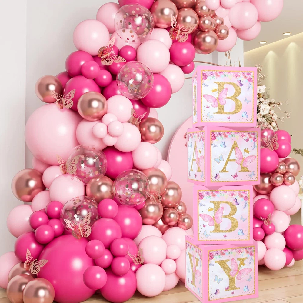 Pink Butterfly Baby Shower Decorations for Girl,Pink Balloon Garland Arch Kit,Pink Butterfly Baby Boxes and Butterfly Backdrop Kit for Baby Shower Butterfly Decorations Birthday Party Decor Pink Butterfly Mega Bundle-Great Value!With 101 different pink butterfly baby shower themed decorations, this amazingly large bundle has everything you need to host the baby shower you desire.Including 4pcs elegantly pink gold butterfly baby shower boxes,96pcs purple balloon garland arch kit and one pink butterfly backdrop banner. Premium Material-Pink butterfly baby shower boxes are made of environmental and durable paper,gold foil print and other non-toxic materials.Our pink butterfly balloons garland kit are made of high quality natural latex,safe and non-toxic,the leather is thick, not easy to burst,and the color is true.High-quality latex allows the balloon to stretch well when inflated.Our pink and gold butterfly background screen is made of heavy duty polyester fabric that is easy to clean, tear resistant and washable. Easy to Assemble-Baby shower "BABY" background picture on the rope and brass buckle design, easy for you to hang the background in your favorite place.You can use our instructions as a reference to easily install the balloon garland.You'll simply have to open the box, push the sides together and close it.You will get four sturdy baby shower boxes.It's all very simple, save time and enjoy the party with your guest. Suitable for Any Occasion-If you are carefully planning a butterfly themed party, baby shower for girl, baby girl birthday, 1st birthday, girl birthday party,gender reveal party,bridal shower,wedding,bachelorette or other party what you want! It will be your best choice. Beautiful pink and gold butterfly decor kit will light up your party. Buy it with confidence-We are committed to providing our customers with satisfactory products. We are very confident that our products are made with the high quality materials. If for any reason you are not completely satisfied with the pink butterfly baby shower decorations,please contact us promptly and we will give you a 100% refund - no questions asked. Pink Butterfly Mega Bundle-Great Value!With 101 different pink butterfly baby shower themed decorations, this amazingly large bundle has everything you need to host the baby shower you desire.Including 4pcs elegantly pink gold butterfly baby shower boxes,96pcs purple balloon garland arch kit and one pink butterfly backdrop banner. Premium Material-Pink butterfly baby shower boxes are made of environmental and durable paper,gold foil print and other non-toxic materials.Our pink butterfly balloons garland kit are made of high quality natural latex,safe and non-toxic,the leather is thick, not easy to burst,and the color is true.High-quality latex allows the balloon to stretch well when inflated.Our pink and gold butterfly background screen is made of heavy duty polyester fabric that is easy to clean, tear resistant and washable. Easy to Assemble-Baby shower "BABY" background picture on the rope and brass buckle design, easy for you to hang the background in your favorite place.You can use our instructions as a reference to easily install the balloon garland.You'll simply have to open the box, push the sides together and close it.You will get four sturdy baby shower boxes.It's all very simple, save time and enjoy the party with your guest. Suitable for Any Occasion-If you are carefully planning a butterfly themed party, baby shower for girl, baby girl birthday, 1st birthday, girl birthday party,gender reveal party,bridal shower,wedding,bachelorette or other party what you want! It will be your best choice. Beautiful pink and gold butterfly decor kit will light up your party. Buy it with confidence-We are committed to providing our customers with satisfactory products. We are very confident that our products are made with the high quality materials. If for any reason you are not completely satisfied with the pink butterfly baby shower decorations,please contact us promptly and we will give you a 100% refund - no questions asked. Shipping from the USA All of our products are shipped from the USA, ensuring quick delivery to your destination. Payment We offer the following payment methods: PayPal, credit card, bank transfer, and eBay's secure payment system. Free Shipping & Free Returns Shipping within the USA is FREE. Additionally, any return is absolutely free for you. Risk-Free Purchase You have the option to return an item within 30 days without any justification. We cover the return shipping costs! Fast Shipping We ship immediately upon receipt of payment. Generally, the package is delivered within 2-3 days in the USA. If it takes longer, we will contact you. Quality and Costs Made in Europe, USA, China No customs fees or additional charges Total satisfaction guarantee Invoice with declared VAT available upon request in .pdf format Feedback Your feedback is very important to us. After you pay for your purchase, you will automatically receive positive feedback from us.