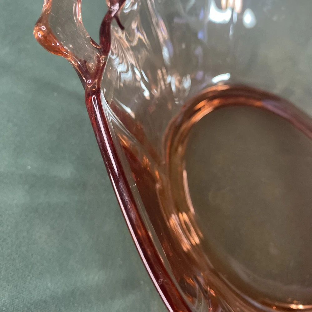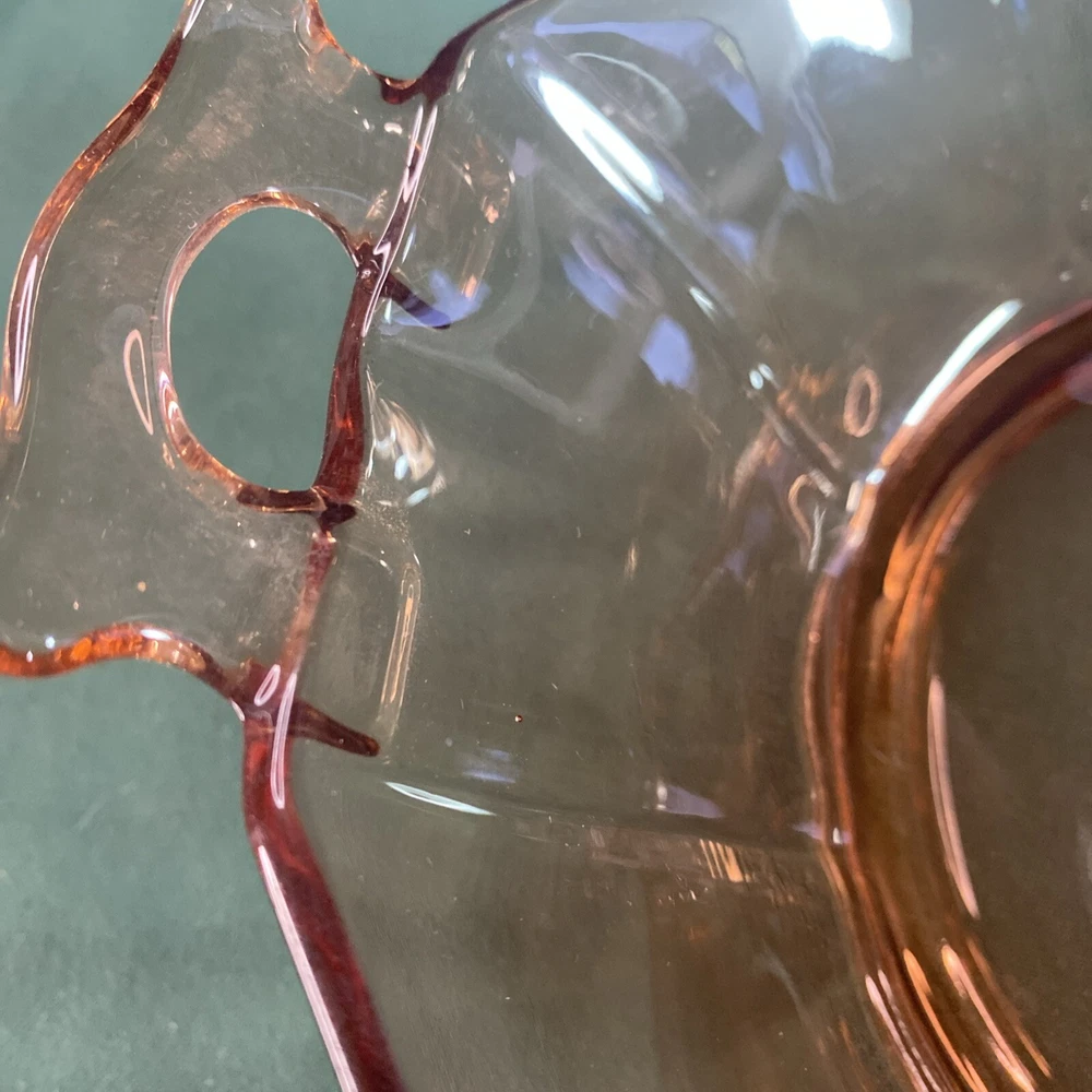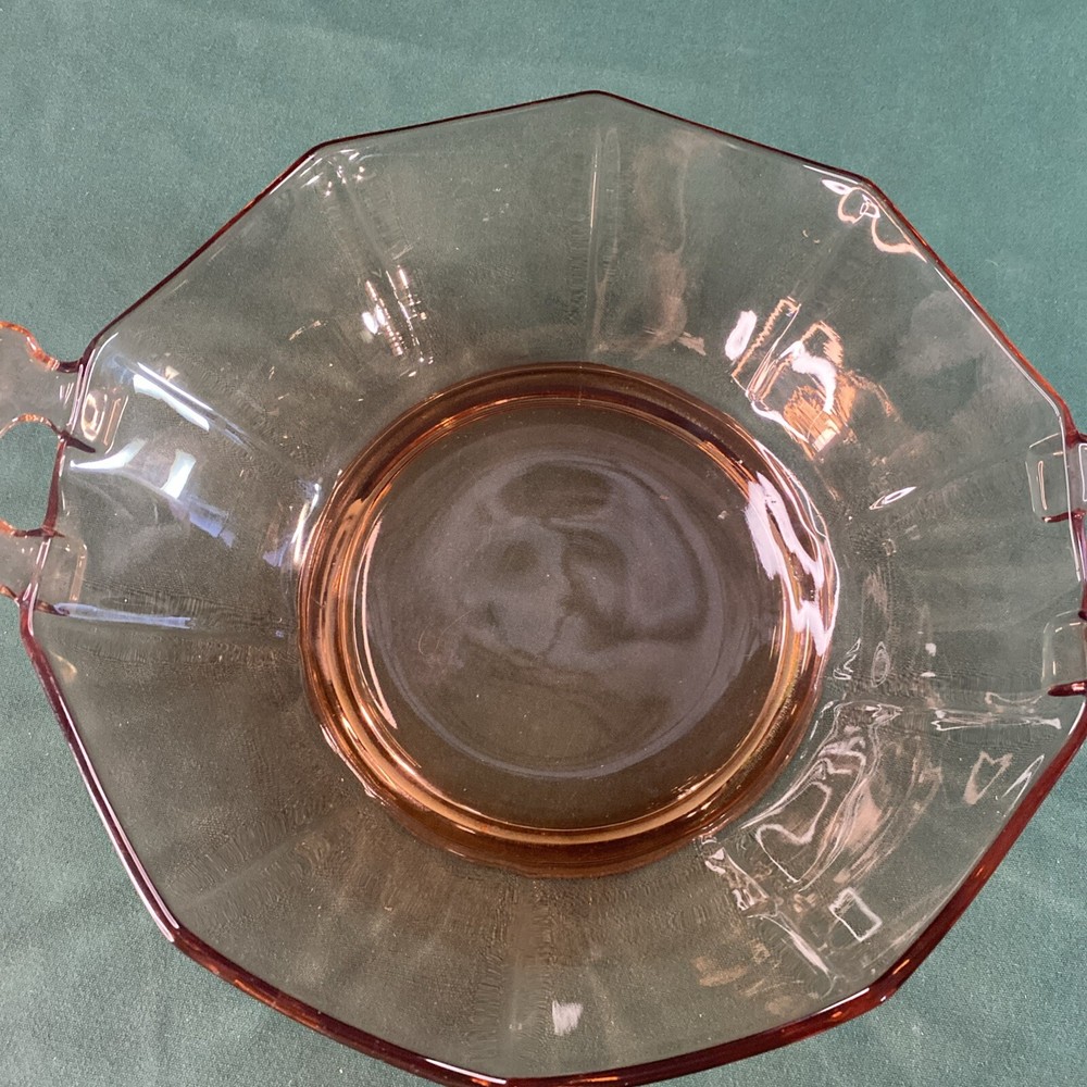 Embrace the elegance of the Art Deco era with this lovely 10" Pink Depression Glass Serving Bowl. The bowl features a striking pink hue that captures the eye and adds a touch of vintage charm to any table setting. Crafted from quality glass material, this serving bowl is perfect for those special occasions or to enhance your everyday dining experience. The unmarked brand adds an air of mystery to this piece, making it a unique addition to your collection. Whether used for serving salads, fruits, or as a decorative piece, this bowl exudes a timeless style synonymous with the Art Deco period. It's a must-have for enthusiasts of classic glassware and those who appreciate the beauty of bygone eras.
