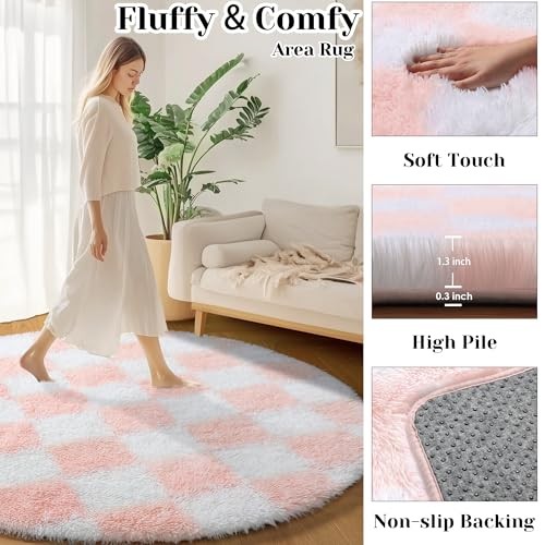 30 Days Return Policy Fast Delivery Trusted seller Pink Round Rug 4ft for Girls Bedroom, Fluffy Soft Circle Area Rug Cute Small Living Room Carpet, Indoor Fuzzy Shag Shaggy Checkered Circular Rugs for Kids Room Nursery Home Decor Aesthetic Product Description Modern Design -- white and pink round rug design is inspired by Checkerboard (date back to the 15th mid-century). It's a classic style that never goes out, suitable for creating aesthetic and elevate your space, adding a touch of personality to your room and impress your guests. Ultra Soft Circle Rug -- Feels like stepping on a fuzzy cloud! Our shag rug is made of microfiber and spongy interlayer, and the shaggy rug surface is covered with billions of 1.6" plush fibers pile, which can provide a warmth on the cold floor and feels comfortable when walking barefoot. Suitable for creating a comfy area for kids, family and pets. Non-slip Bottom -- The thickened felt bottom with 40000+ high-density small and strong anti-slip dots, which can enhance the friction between the shag area rug and the floor to prevent it from sliding. The tight weaving process ensures that the floor rug is not easy to fall apart, and the fluffy carpet back is not easy to damage the floor. Easy to Clean Plush Area Rug -- Wipe the fuzzy rug with rag or clean it with a low-power vacuum, or shake outside, or hand wash the furry rug with cold water or mild-cleaner, and place it in a ventilated place to air-dry. Please Note: Do not wash the soft rug by machine, bleach, tumble dry, or iron. Because of vacuum packaging, t will be some creases and not fluffy enough when you first open it, lay it flat for 2 to 3 days and it will be recover fluffy. Eye-Catching Home Decor -- pink and white circular rug is a stylish and bright addition to living room, bedroom, nursery, bedside, girls room, playroom, classroom, kids room, kids bedroom, girls bedroom, baby room, kindergarten, apartment, home offices, game room, college dorm, reading nook, or home decorative. Shipping Returns Payment Shipping Shipping is FREE to all addresses other than APO/PO boxes in the lower 48 states. All our stock ships from US-based warehouses. Shipped via USPS or UPS (depending on location and package weight) Unless stated otherwise, all orders will ship within 24-72 hours of your payment being processed. Check our feedback to see the great reviews of FAST shipping we offer. Returns As our valued customer, we will do our best to make sure the product you receive arrives to you on time and as expected. If you are not satisfied with your purchase, please contact us within 30 days of receiving your order to process a return. Payment We currently accept payment via eBay managed payments only. Once payment is cleared, we will dispatch your shipment within 1-3 business days. Please refer to the "Shipping" tab for more information regarding shipping speed to your destination.