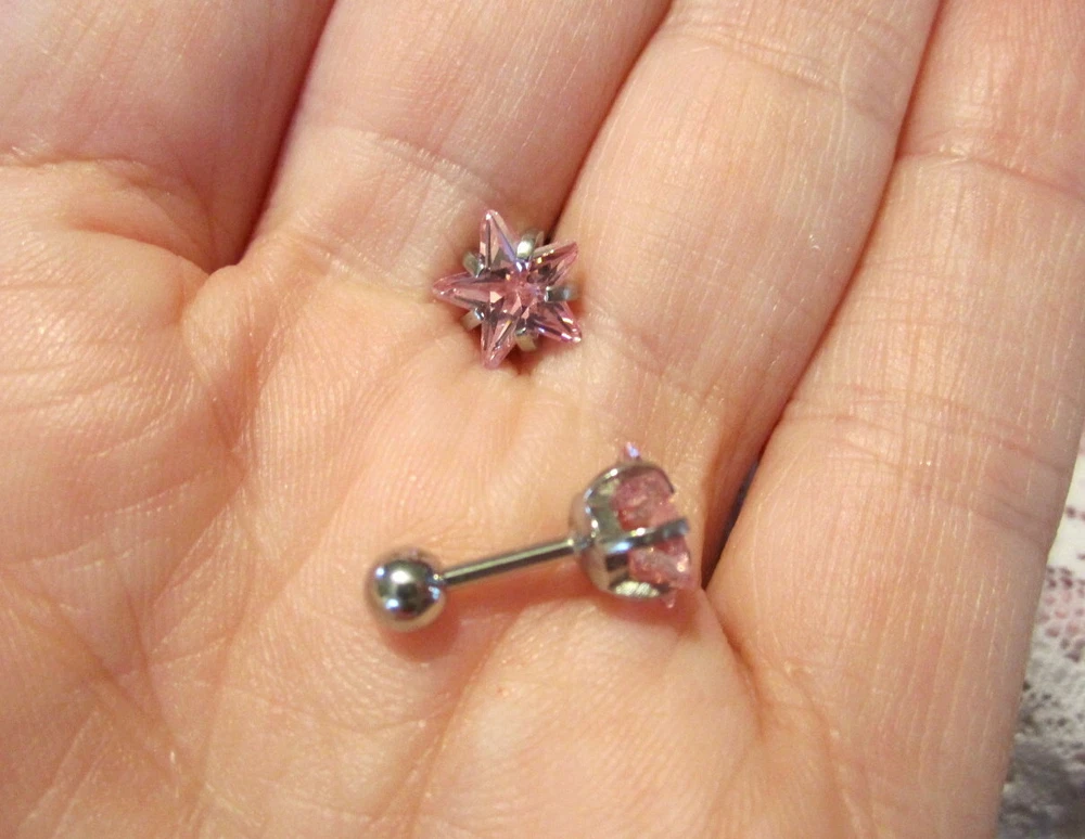 DETAILS ***NOTE*** This listing is for ONE SINGLE piece! This listing is for a beautiful pink crystal star stud earring. These can also be used for other piercings such as navel and nose. They feature beautiful Swarovski 8mm star crystal elements in the color pink and are super stunning!! They are set in stainless / surgical steel posts which are hypoallergenic. The earring has a screw on ball closure. These are made using Swarovski crystal elements and are NOT Swarovski brand. The pics do not even begin to catch the beauty in these earrings...they are truly stunning!! They are also very high in quality!! Please ask any questions that you may have. FEEDBACK POLICY DUE TO A LARGE NUMBER OF BUYERS THAT NEVER RETURN FEEDBACK...I WILL ONLY GIVE IT AFTER THE BUYER DOES. WHEN THE BUYER RECEIVES THEIR ITEM AND LEAVES ME POSITIVE FEEDBACK, I PROMISE TO RETURN THE FEEDBACK TO THEM. SOMETIMES IT TAKES ME A FEW DAYS BUT I WILL GET IT TO YOU!! IF THE BUYER IS NOT HAPPY WITH SOMETHING I ASK THEM TO PLEASE CONTACT ME BEFORE LEAVING FEEDBACK AND GIVE ME THE FAIR CHANCE TO MAKE THINGS RIGHT!! I HOPE THAT MY BUYERS WILL UNDERSTAND AND I THANK YOU!! QUESTIONS Ask any question that you may have. If you are not happy with this item when you receive it.... please contact us instead of leaving a negative feedback. We are always willing to work anything out. Our customers come first and we want them to be happy. We always promise excellent customer service. A happy customer comes back!! We stand 100% behind our products and 100% guarantee all of them!! PAYMENT DETAILS USA and OUTSIDE USA: We accept PAYPAL payments. We do combine shipping on multiple items IF all items are paid within one payment. PLEASE WAIT FOR COMBINED SHIPPING INVOICE!! If you cannot pay with Paypal immediate, please let us know right away. This will keep us from bothering you with tons of invoices because we will know when to expect your payment!! Items MUST be paid for within 4 days. If not, We will relist the item and file a Non-Paying Bidder complaint. We truly hope that all transactions can be smooth and pleasant!! PLEASE understand that shipping is more than just stamps or postage. We do combine shipping on multiple items IF all items are paid within one payment. PLEASE WAIT FOR COMBINED SHIPPING INVOICE!! I try and ship items out within 24-48 hours after payment is received. I am very careful to package items extremely well which requires alot of high quality packing materials. Please also understand that no matter how fast I ship...the postal service is out of our control. Thank you! FOR RETURNS If you feel that you are not happy with an item, please CONTACT ME before leaving feedback. If the item is broken...I require return and will refund your payment in full when the item gets back to me. If you just dont want the item and choose a REFUND please understand that I cannot issue it until I have the item back in my home and it is in the EXACT shape as when it left. You will need to return the item at your own expense and refunds do not include shipping unless the item is broken or not as described. This is the only way that I can recover some of my costs that I would otherwise lose. THANK YOU!!
