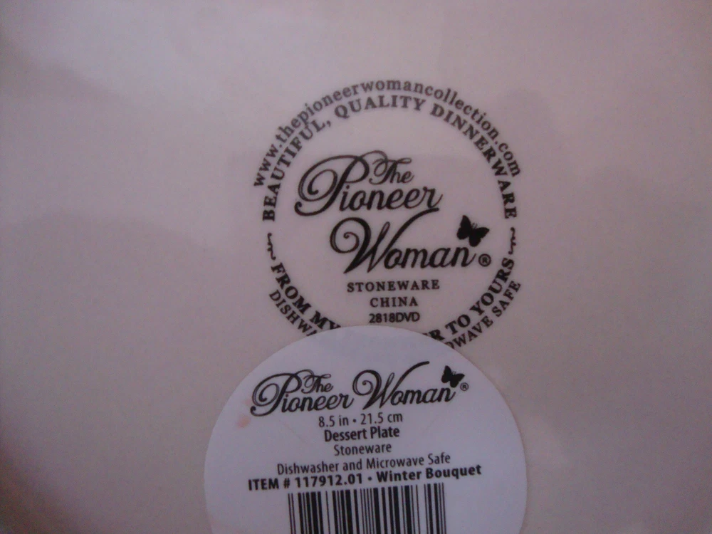 Pioneer Woman Dessert Plate Winter Bouquet 8.5” Red Gold Trim CONDITION: Wear in one small spot on gold trim as shown in photo. Small nick to bottom foot as shown in photo.