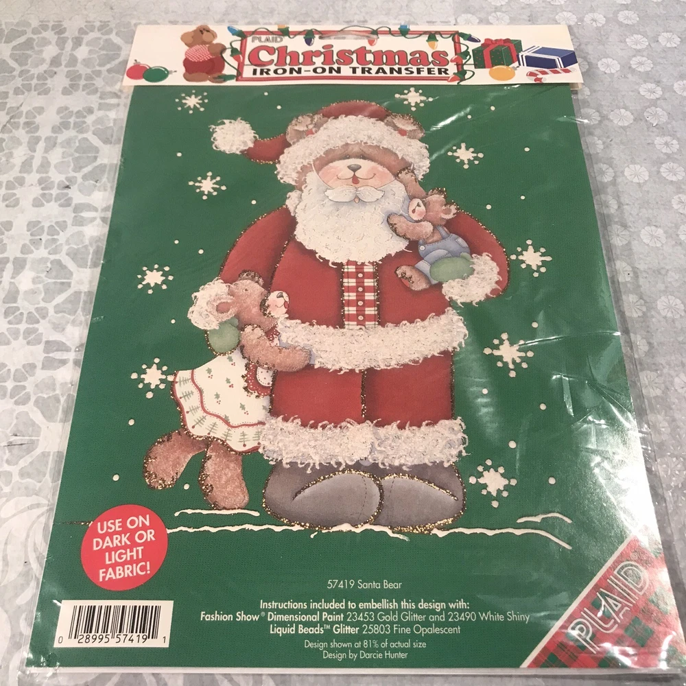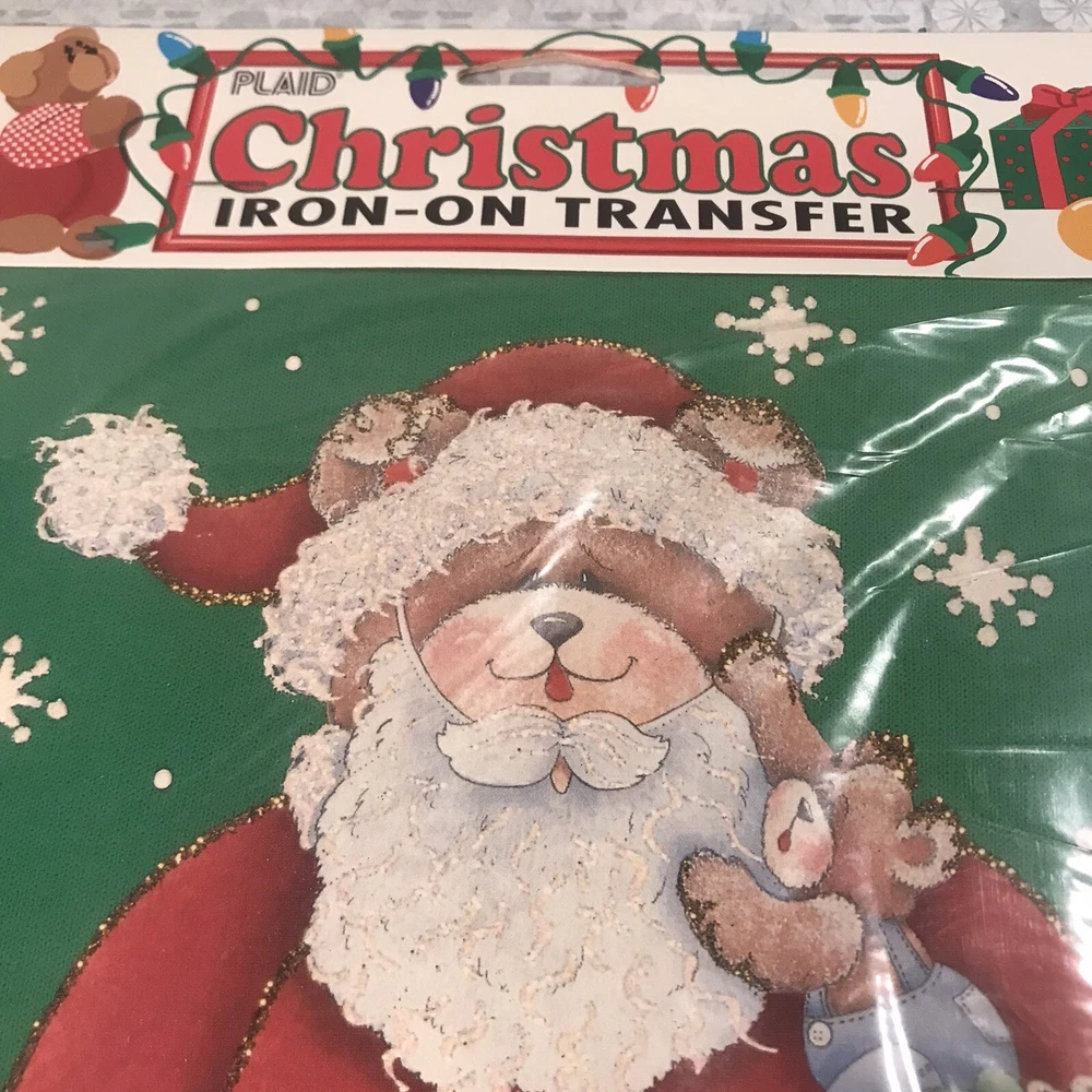 Make your Christmas crafting dreams come true with this Plaid Iron-On Transfer. Featuring a vintage Santa Bear design, this transfer is perfect for adding a festive touch to any fabric surface. Created by a trusted brand and made in the United States, this transfer is sure to stand the test of time. With a focus on holiday and Christmas themes, this transfer is ideal for crafting enthusiasts looking to add a touch of festive cheer to their creations. Whether you're a seasoned pro or just starting out, this Iron-On Transfer is easy to use and will help you add a unique touch to your crafts. Don't miss out on the opportunity to create something special this holiday season with this Plaid Iron-On Transfer. Deck the halls and brighten your wardrobe for the most wonderful time of the year! Christmas transfers are super for sweatshirts, stockings, tree skirts, and other seasonal gifts and accessories. Complete embellishing instructions inside. Please see all pictures.