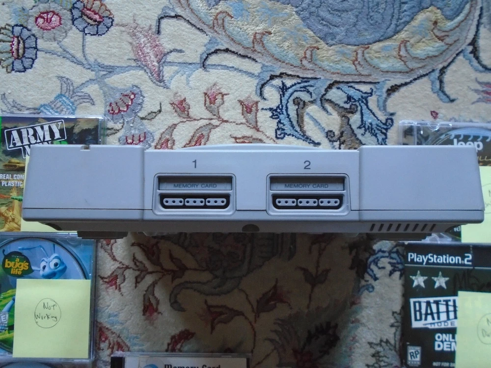 Video game accessories bundle includes: Lot of PS1 console, memory card, and several game discs. The items are NOT WORKING PROPERLY, FOR PARTS OR REPAIR - read below for details Functionality and Cosmetic Condition: The PS1 console turns on, and it will read discs, BUT the spindle is loose and keeps coming out when you remove discs (see photos). The memory card does not work. The games were tested on another PS1 console. Road Rash works, but it glitchy. Army Men 3D freezes. The rest of the games do not work. There are lots of scratches on the discs. Everything is for parts, repair, or repurpose. The photos are of the actual items being sold. We only accept returns if the items were not described correctly. Thank you for viewing our auction and good luck bidding!