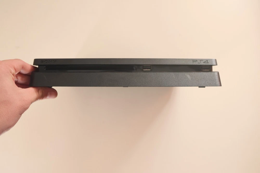 Play Station 4 Slim 1tb. Comes with 2 controllers, one black one red, the red is a little separated but it doesn't feel like it is about to fall off when you are playing and is pretty sturdy. Comes with Madden 23 in the console. comes with charging cord for both controllers and power cord. I reset it, feel free to reach out with questions or offers.