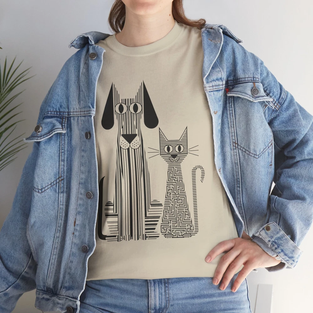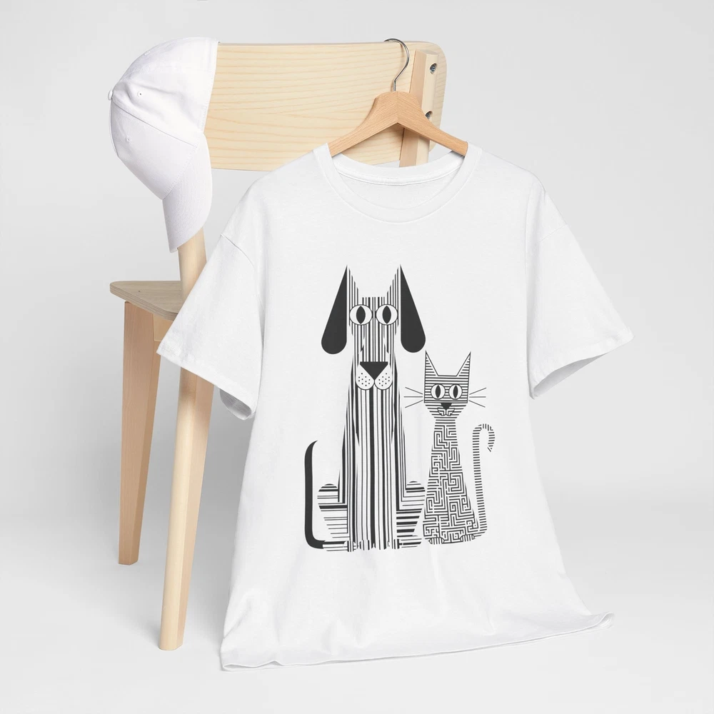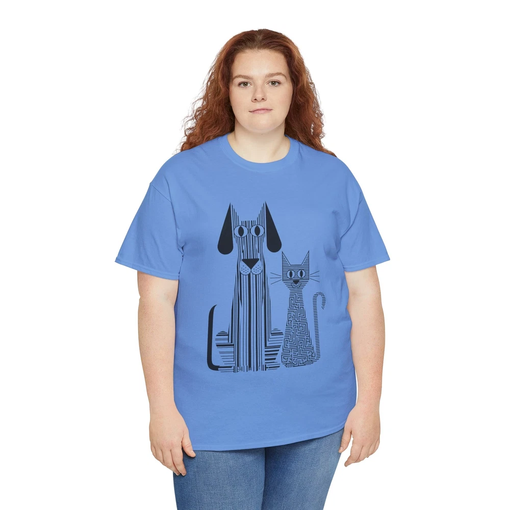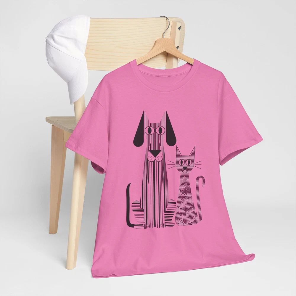 Introducing our stylish and comfortable Unisex Heavy Cotton Tee, perfect for anyone who loves to express their personality through fashion. Featuring a fun and quirky design of a playful dog and cat, this tee captures a lighthearted vibe that can brighten any day. Made for both casual outings and semi-formal gatherings, it’s a versatile addition to any wardrobe. Ideal for animal lovers and those seeking a unique, artistic flair, this tee makes a great gift for birthdays, holidays, or just because! Dive into comfort and style while celebrating your love for pets, and let this tee bring smiles wherever you go! Product features - Durable shoulder tape for added stability - Seamless construction for better fit and reduced waste - Elastic ribbed collar retains shape - Soft, smooth fabric perfect for vibrant printing - Ethically sourced 100% US cotton Care instructions - Non-chlorine: bleach as needed - Do not iron - Do not dryclean - Machine wash: cold (max 30C or 90F) - Tumble dry: low heat