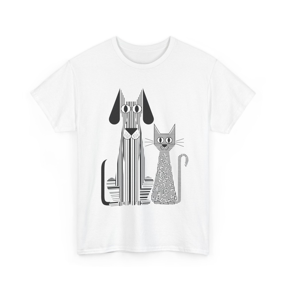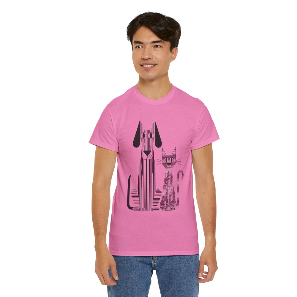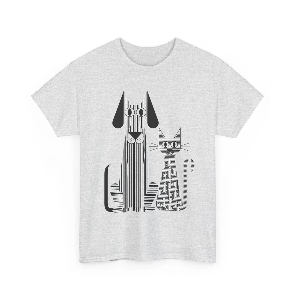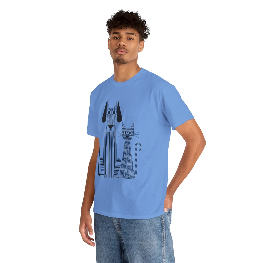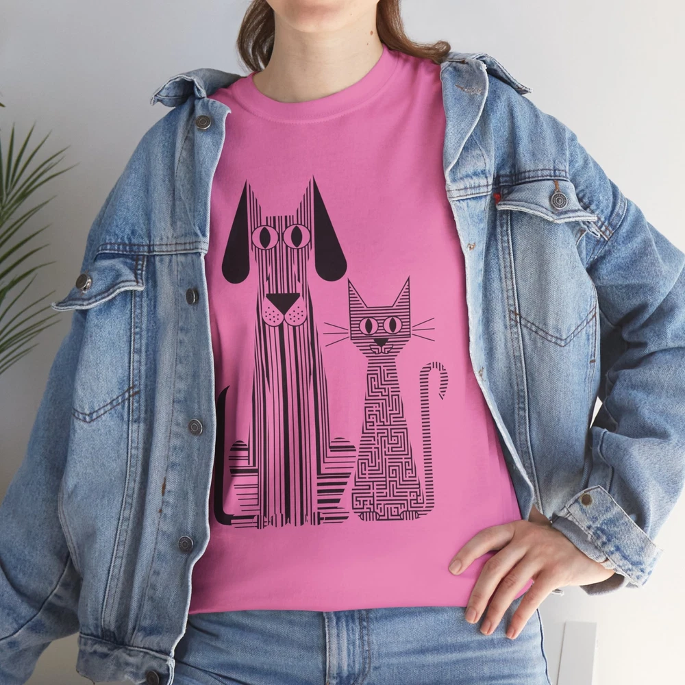 Introducing our stylish and comfortable Unisex Heavy Cotton Tee, perfect for anyone who loves to express their personality through fashion. Featuring a fun and quirky design of a playful dog and cat, this tee captures a lighthearted vibe that can brighten any day. Made for both casual outings and semi-formal gatherings, it’s a versatile addition to any wardrobe. Ideal for animal lovers and those seeking a unique, artistic flair, this tee makes a great gift for birthdays, holidays, or just because! Dive into comfort and style while celebrating your love for pets, and let this tee bring smiles wherever you go! Product features - Durable shoulder tape for added stability - Seamless construction for better fit and reduced waste - Elastic ribbed collar retains shape - Soft, smooth fabric perfect for vibrant printing - Ethically sourced 100% US cotton Care instructions - Non-chlorine: bleach as needed - Do not iron - Do not dryclean - Machine wash: cold (max 30C or 90F) - Tumble dry: low heat