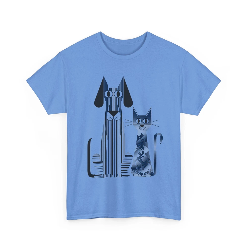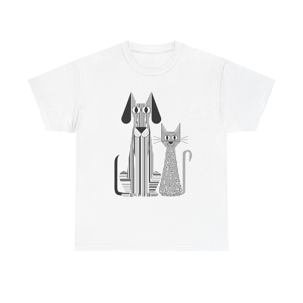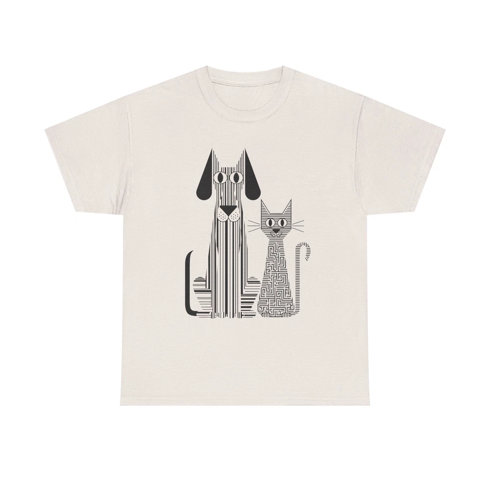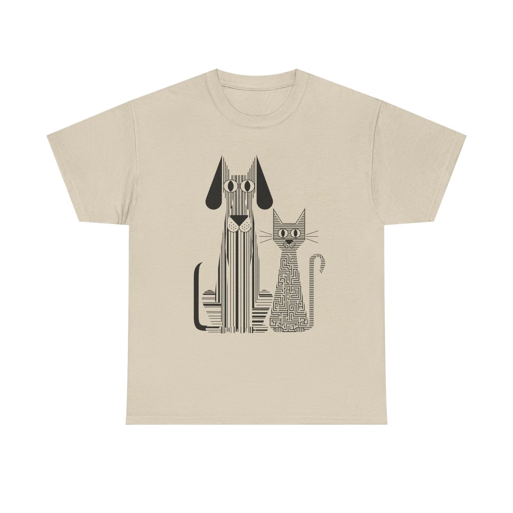 Introducing our stylish and comfortable Unisex Heavy Cotton Tee, perfect for anyone who loves to express their personality through fashion. Featuring a fun and quirky design of a playful dog and cat, this tee captures a lighthearted vibe that can brighten any day. Made for both casual outings and semi-formal gatherings, it’s a versatile addition to any wardrobe. Ideal for animal lovers and those seeking a unique, artistic flair, this tee makes a great gift for birthdays, holidays, or just because! Dive into comfort and style while celebrating your love for pets, and let this tee bring smiles wherever you go! Product features - Durable shoulder tape for added stability - Seamless construction for better fit and reduced waste - Elastic ribbed collar retains shape - Soft, smooth fabric perfect for vibrant printing - Ethically sourced 100% US cotton Care instructions - Non-chlorine: bleach as needed - Do not iron - Do not dryclean - Machine wash: cold (max 30C or 90F) - Tumble dry: low heat
