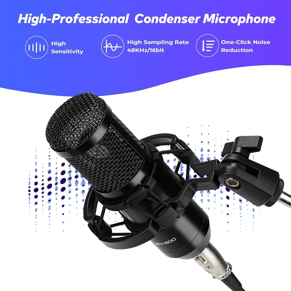 Store New Arrivals Add to Favorite View Feedback Contact Podcast Equipment Bundle, BM800 Condenser Podcast Microphone Bundle Kit with Live Sound Card, Streaming Audio Mixer Studio All-In-One Beginner Podcast Package for Recording Youtube Tiktok Description Frequency Range 20-20KHz Signal-to-Noise Ratio 78 dB Power Source Battery Powered Item Dimensions 6.69 x 2.76 x 3.94 inches Material Type Plastic, Metal Audio Sensitivity 10 dB Model Number BM800 Number of Channels 1 Model Name BM-800 Microphone Form Factor Table Array Number of Batteries AA batteries required. Hardware Platform PC, Tablet, Smartphone Connector Type 3.5 mm Jack Item Weight 800 Grams Connectivity Technology Bluetooth, Auxiliary Impedance 140 Kiloohms Special Features 1-Touch Recording, Volume Control, Mute Function, Noise Reduction Special Feature 1-Touch Recording, Volume Control, Mute Function, Noise Reduction Color DJ Compatible Devices Audio Interface Polar Pattern Unidirectional Recommended Uses For Product Singing Included Components Condenser Microphone Bundle Precision Sound Control: Our audio mixer and BM800 microphone set is the epitome of audio versatility. This dj mixer is your command center for voice and sound effects, tailor-made for live streaming, podcasting, singing, and gaming voiceovers. It offers real-time audio monitoring through headphones, allowing you to effortlessly adjust frequencies and refine your background music. Exceptional Audio Clarity: Our podcast equipment bundle boasts state-of-the-art noise reduction and cardioid pickup patterns, capturing your voice with precision from all directions. The double-layer POP filter and windproof foam cap eliminate unwanted noises, while our DSP audio processing chip enriches your sound with professional reverberation settings, rivaling the quality of a recording studio. Interactive Sound Effects: Spice up your live streams with the V10Xpro sound card's 16 special sound effects and 14 Beautifying voices presets. With a simple press, you can switch between sounds, adding an interactive and entertaining dimension to your broadcasts. The user-friendly interface ensures quick and easy sound adjustments for a more dynamic live experience. Designed for Live Streaming Excellence: Our ASMUSE podcast microphone bundle is built to support collaborative live streaming, accommodating up to 4 people, 3 devices, and 2 platforms simultaneously. With multiple inputs and interfaces, including 2 mics inputs, headphone and earphone jacks, and mobile live streaming capabilities, it offers comprehensive real-time monitoring and effective noise reduction for a professional broadcast. Vibrant Visuals and Intuitive Controls: The Asume beginner podcast kit's 7-color backlight and LED display add a touch of sophistication to your setup. The cycle flashing lights and high-end display ensure you're always in control, while the push-pull design provides a comfortable and long-lasting tuning experience. Ultra-Low Noise Performance: Our podcast recording equipment boasts a high signal-to-noise ratio, ensuring pristine recordings with minimal distortion. The unique 3-layer protection system provides a clear, plosive-free vocal performance great for singers and podcasters. Seamless Compatibility: Universally compatible with computers, tablets, and smartphones, our recording studio equipment is the perfect addition to any podcast starter kit. It offers a plug-and-play solution for various platforms, making it versatile for streaming, chatting, content creation, and more. Long-lasting Portable Power: With a built-in 1200mAh rechargeable battery, our podcaster equipment bundle ensures up to 4-6 hours of continuous use, providing portable power for your creative endeavors anywhere, anytime. Product Description Why Choose Asmuse Condenser Microphone Bundle Professional Recording Studio Equipment: Equiped with BM-800 microphone, Shock mount, Pop filter, Mic adjustable suspension scissor arm stand, Anti-wind foam Cap, Power cable, Sound card. Professional Live streaming Audio Mixer: 11 kinds of fixed background special effects sound, 5 kinds of sound changing modes, 5 kinds of special functions (KTV/ Concert/ Recording/ Sell Goods/MC), adds more fun to your live streaming and podcasting. Your Best Helper For Playing And Recording High quality microphone performs perfectly and reproduces excellent sound that guarantees your exquisite sound. One-Click Noise Reduction Equipped with one-button noise reduction, it is convenient and effective to reduce off-axis noise such as room environment, while maintaining maximum function. Smart Bluetooth Technology First Bluetooth connection: Turn on the live sound card, search for " V8 SoundCard " and click the link. ABOUT US We offer the best prices around on high quality products. Our E-store includes media such as books, movies, music and games while offering electronics, toys, sporting apparel, clothing, tools, general home, garden items and more. SHIPPING We are always working hard to ensure your package arrives as soon as possible. Please understand that some factors like weather, high postal traffic, and the performance of shipping companies are outside of our control. We offer free shipping to the lower 48 states and ship within 2 business days of payment, usually sooner. We do not accept P.O. Boxes. Please provide a physical address. For shipping outside of the continental USA, we only use eBay's Global Shipping Program.The item is shipped to KY and then sent to the rest of the world. International customers are responsible for all duties and taxes. Continue to check out in order to calculate costs for shipping the item to your country. Messages regarding eBay's Global Shipping Program MUST be directed at eBay EXCLUSIVELY. RETURNS We offer a 30-Day Return Policy on items which you are not completely satisfied with. You have the option for a full-refund or an exchange of the item. No returns are available on items shipped outside of the USA. PAYMENT