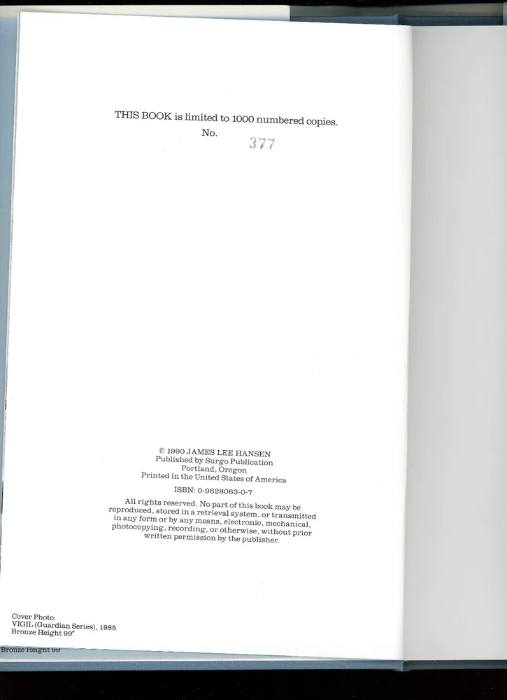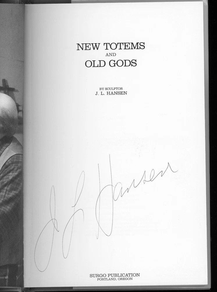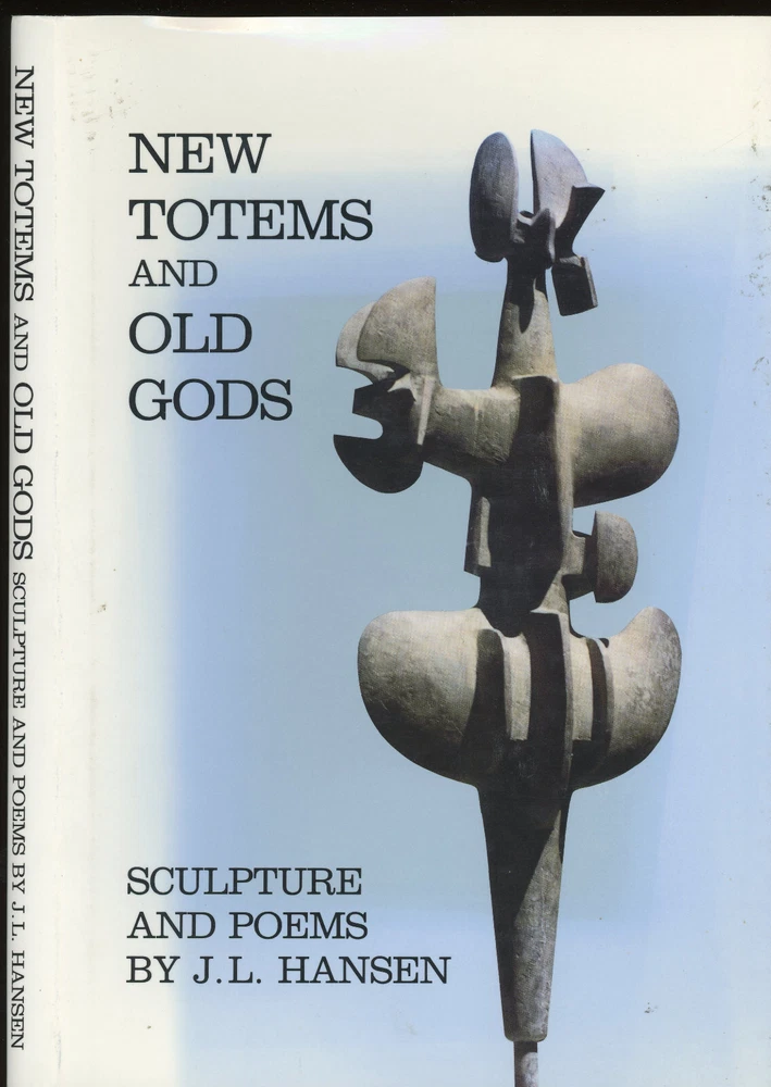 Poetry: NEW TOTEMS AND OLD GODS by J L Hansen. Includes 20 photos of sculptures by Hansen, plus a handful of photos of people and smaller items. Number 377 of a limited edition of 1000 copies. 1st edition. Signed by the author on the title page. Printed 1990. Published by the author. 7 1/4 inches wide by 10 3/4 inches tall. Original dust jacket. Blue cloth covers with black stamping on spine. 125 pages. Condition: Dust jacket shows little/no wear: somewhat soiled on both panels; flaps not clipped. Covers show light wear: lower spine edge rolled; page edges unmarked. Penciled seller notes on the FFEP, inked author signature on the title page, inked margin note on one paragraph in the preface, otherwise inner pages are glossy, clean, tight, and unmarked; light/little toning (off-white). Money back upon return if not satisfied or any problems with shipping within the US. Due to changes at the US Postal Service, we can no longer guarantee delivery on international mail. Thanks for looking. International Buyers – Please Note: Import duties, taxes, and charges are not included in the item price or shipping cost. These charges are the buyer's responsibility. Please check with your country's customs office to determine what these additional costs will be prior to bidding or buying. 06/16/24 1/10
