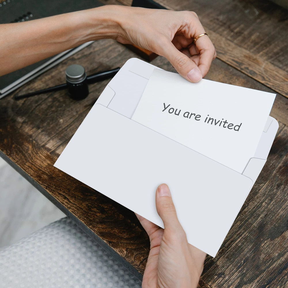 Set of 120 Pack A6 Invitation Envelopes: Poever A6 invitation envelopes set includes 120 pack white envelopes and a sturdy box for shipping protection and easy storage. Each A6 invitation envelope measures 6.5 x 4.75 inches, perfect size for greeting cards, holiday cards, photos, postcards, invitations, letters, announcements, thank you notes, RSVP and more Envelopes Protect Your Privacy: Our A6 small envelopes are made of premium 120 GSM paper stock, which are thick enough to prevent transparency and ensure the items inside are not see-through. Poever White Invitation Envelopes are well-made and durable, prevent your contents from scratch and stain Self-Seal Envelopes For Easy Use and Security: Each A6 white greeting cards envelope comes with a strong adhesive strip for quick self peel and seal, no glue, wax or tape needed. The adhesive strip is strong and lasting, which could create a full and long-time secure seal, protects your documents from damage or falling out of A6 envelopes Printable Blank Envelopes: Poever A6 blank envelopes are compatible with most Inkjet and laser printers, no worry about smudging or jamming. Customize your own envelopes by stamps, stickers, drawing, or printing patterns on them. Ideal for holidays invitation like Christmas, Valentine's Day, Mother's Day etc, and also for party and event invitations like wedding, baby showers, birthday etc. Also perfect for office and business use