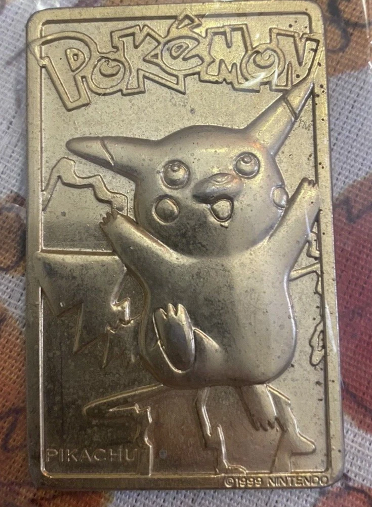 This rare and special edition Pikachu trading card is a must-have for any Pokémon League fan. The card features a stunning gold-plated finish and is made of high-quality metal material. It was manufactured by Nintendo in 1999 and is part of the Burger King set. This vintage card is a perfect addition to any collector's set and is sure to impress with its unique attributes. The card is in excellent shape and has been well-preserved over the years. It is a great opportunity to own a piece of Pokémon TCG history.