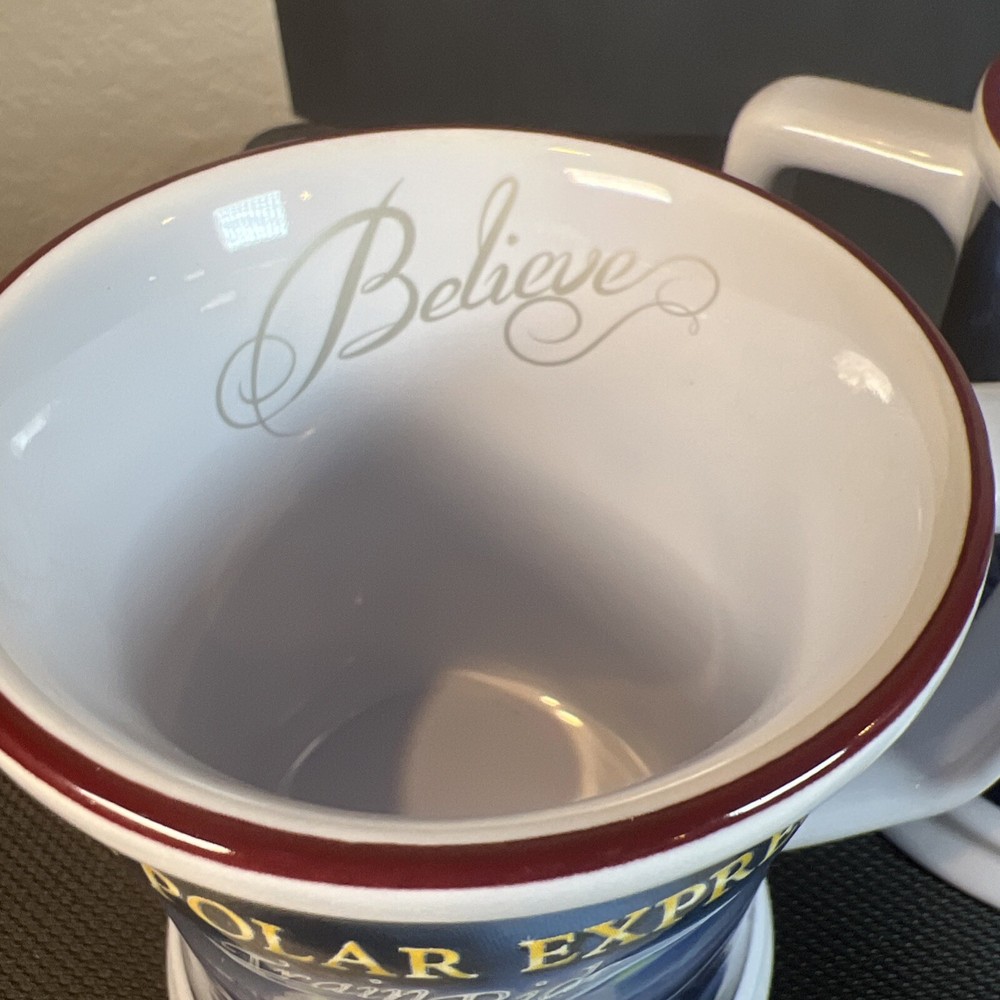 Celebrate the 20th anniversary of the Polar Express with this charming "Believe" coffee mug set from Warner Brothers.