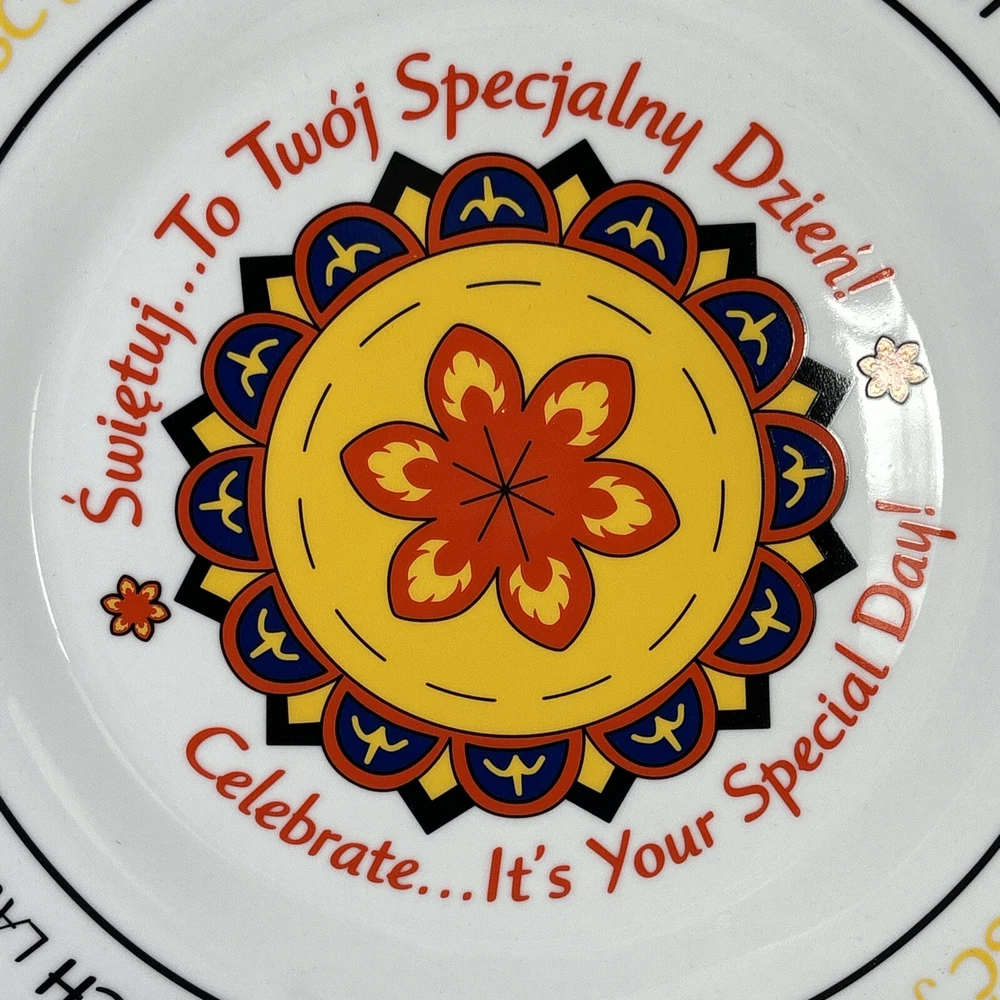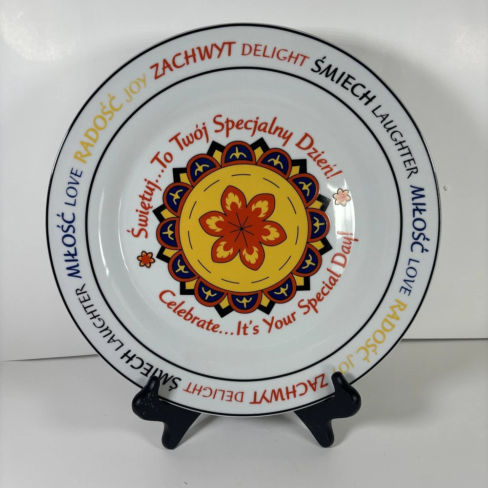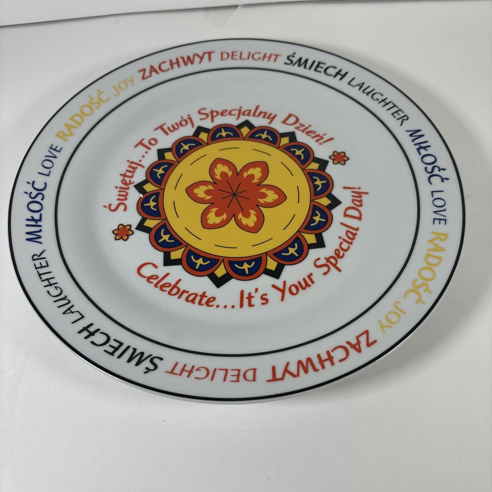 Polish Abbey Press Celebrate Your Special Day Plate Platter Gift 10 1/2" Polish/English Greetings. No chips cracks or wear! Thanks for looking!