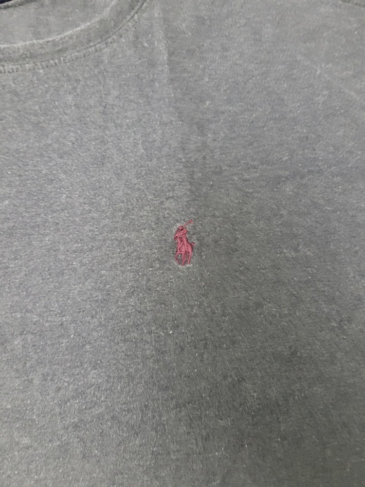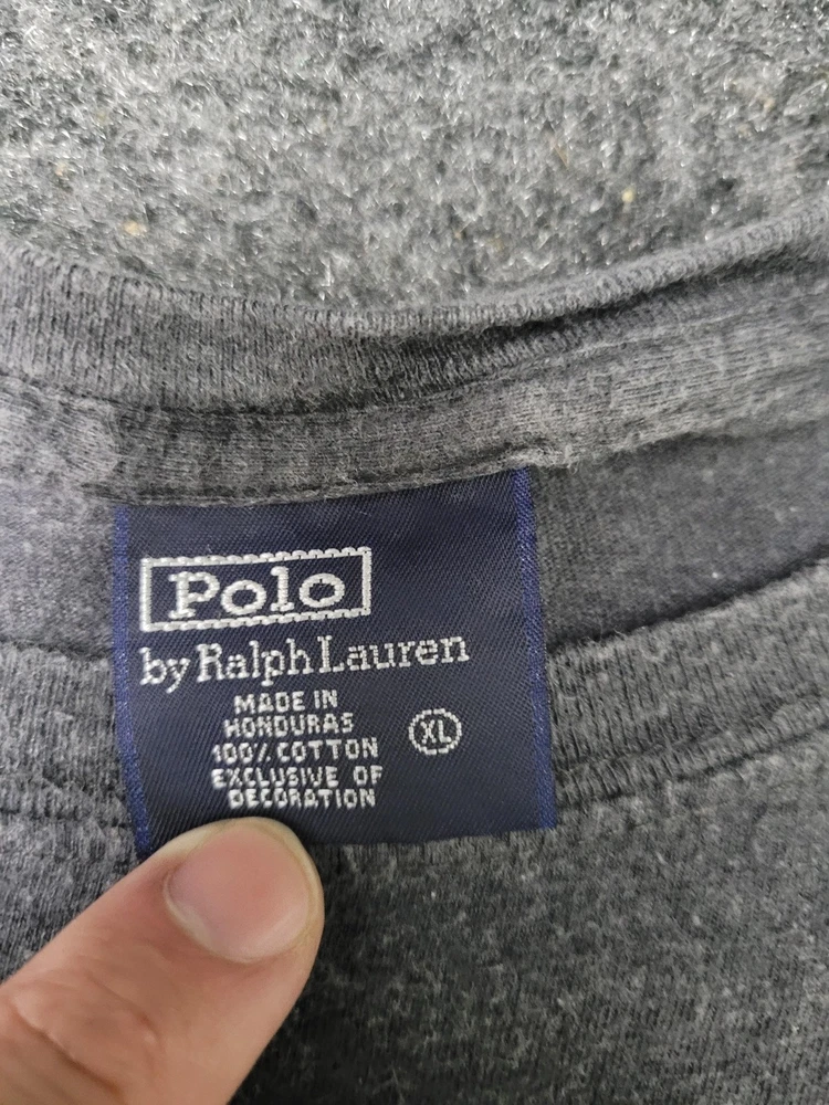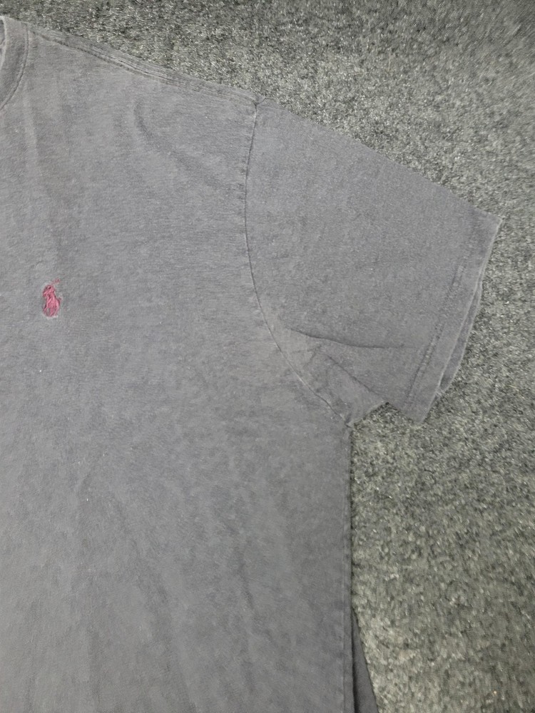 This listing is for a Polo By Ralph Lauren Shirt Mens XL Gray Crew Neck Logo Classic Cotton T-Shirt [Pre-owned - Good] Pre-owned Polo by Ralph Lauren T-shirt with light overall wear and wash softness to the fabric. Light surface piling and scattered lint across the body; small faint spot on the lower front as shown in photos; printed neck label reads XL and is intact; no holes, tears, or repairs. Refer to pictures for condition. Message me if you have any questions.