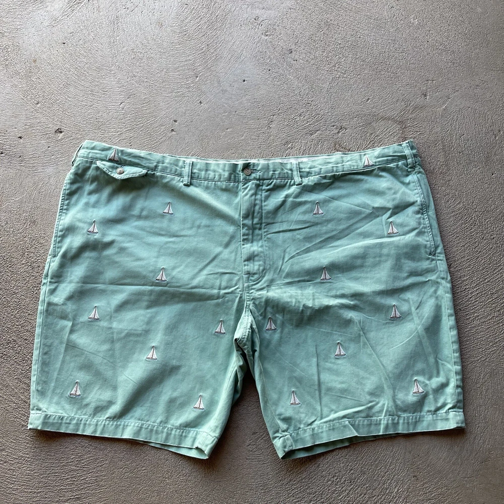 Polo Ralph Lauren Shorts Mens 54 Big Green Chino Sail Boat Outdoor Beach Preppy