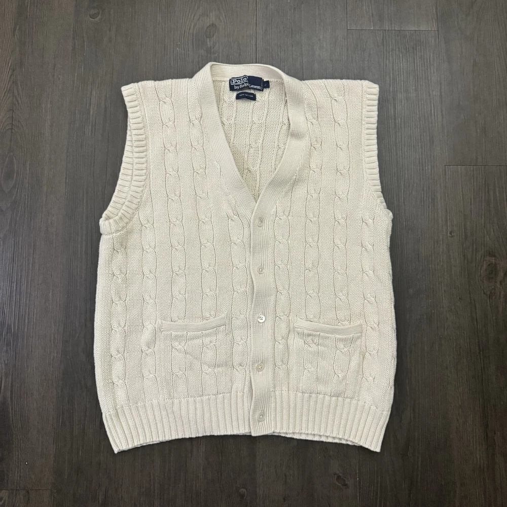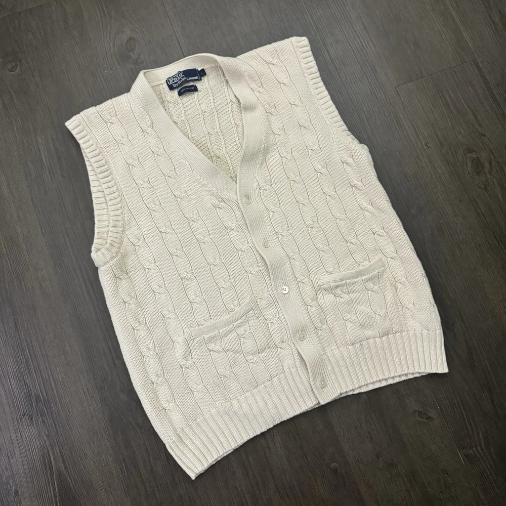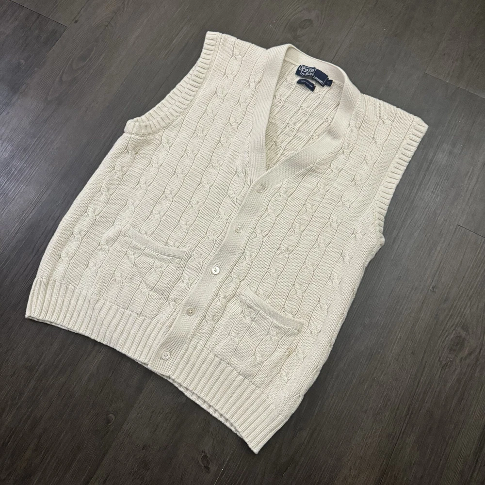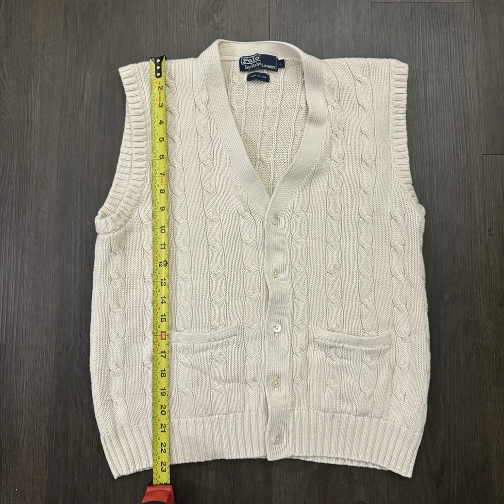 Polo Ralph Lauren Sweater Vest Button Up Cream Adult Size L Cable Knit