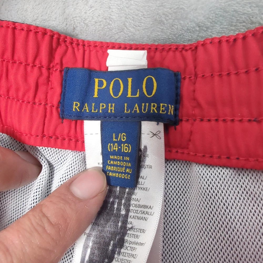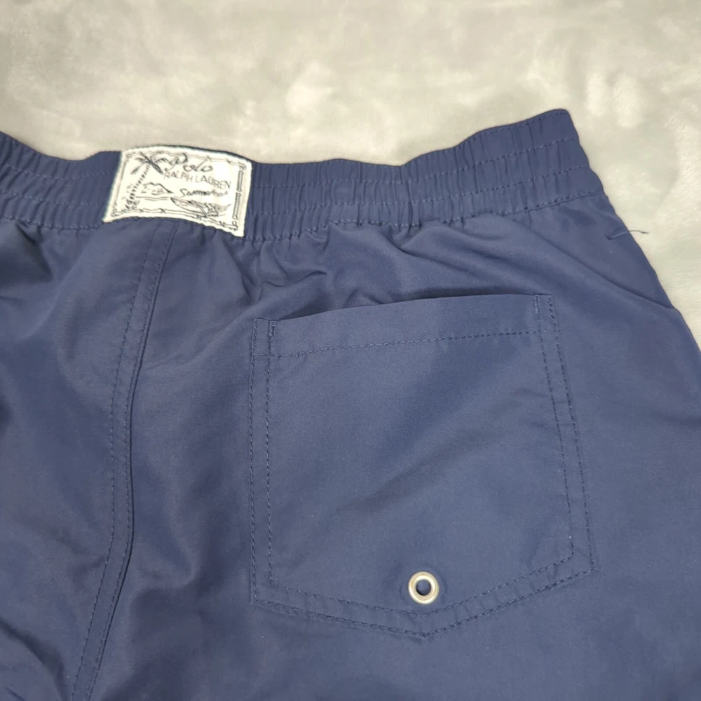 Get ready for a day at the beach with these Polo Ralph Lauren shorts for boys. The blue color and solid pattern make them a classic choice for any young wave rider. These board shorts are made of lightweight and breathable polyester material, ensuring a comfortable fit for any activity, whether it's surfing or just playing in the waves. Description may be generated by AI. · Ships within 24 hours · Free 30 Day Returns · Contact us via message for prompt resolution with any issue