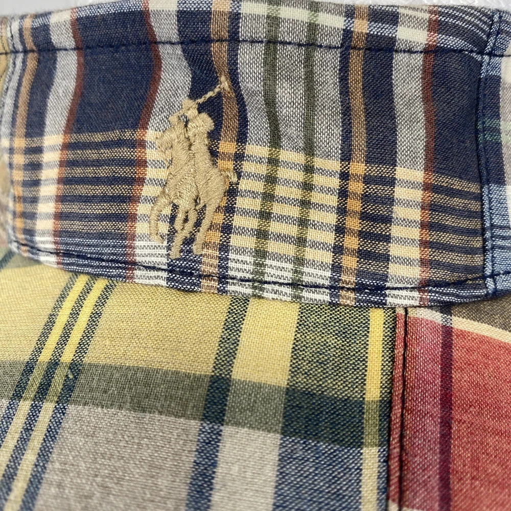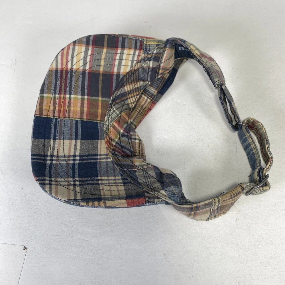 Polo Ralph Lauren Visor Sun Hat Cap Strap Back Patchwork Madras Plaid Pony Golf