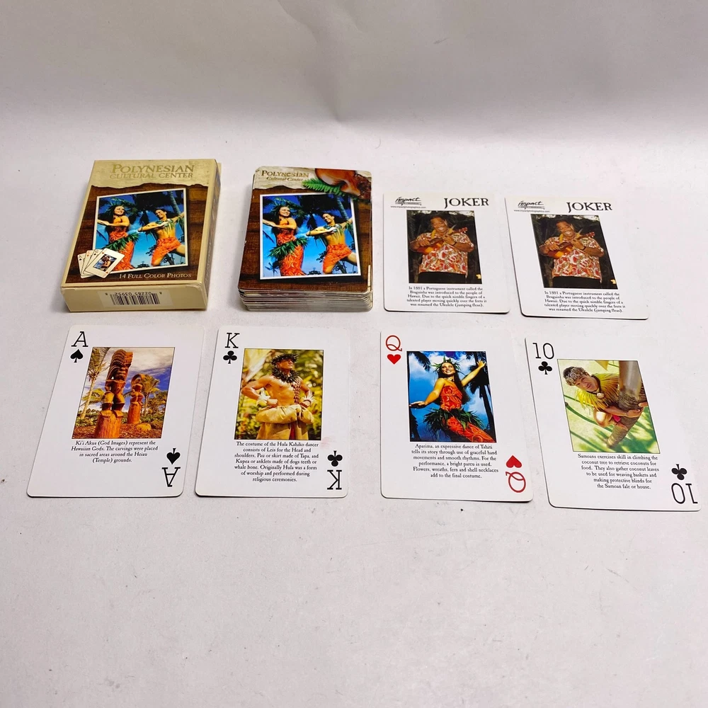Complete 52 card deck plus 2 jokers. Top of box has a small tear as pictured. Photos show the actual items you will receive.