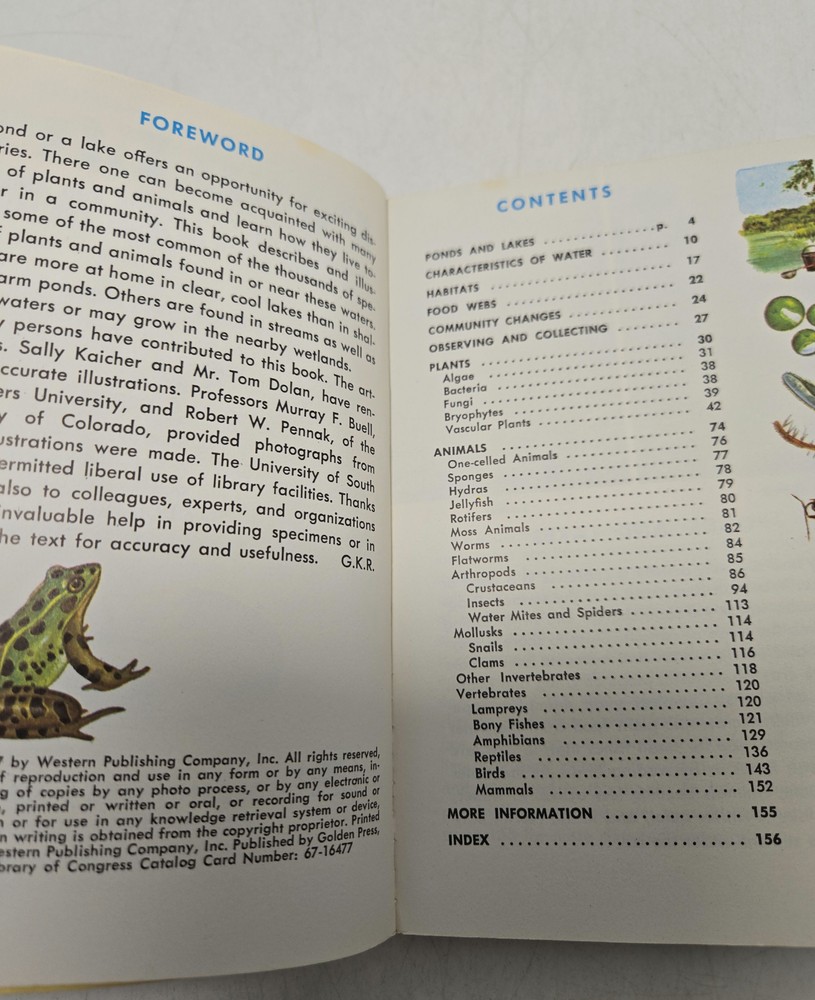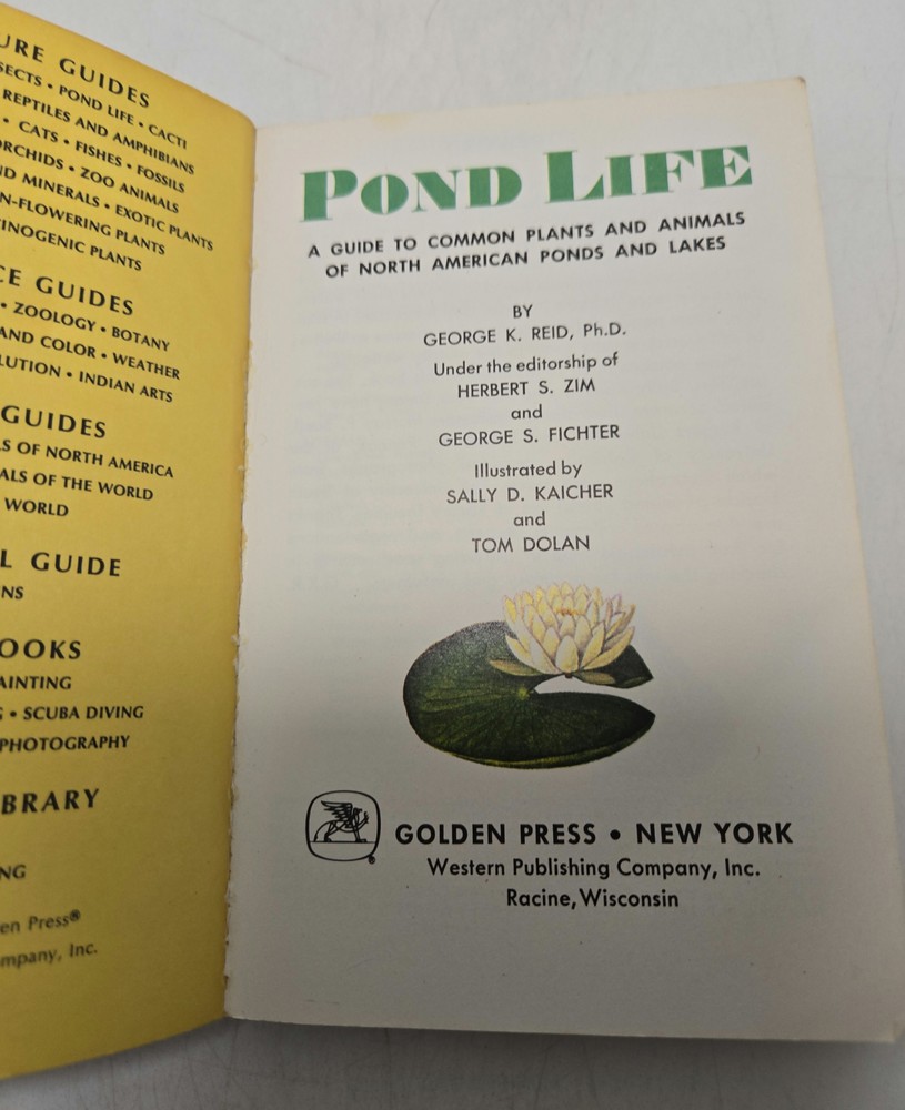 Pond Life Paperback – January 1, 1967 by George K. Reid This guide describes and illustrates, in full color, the plants and animals that live in or near ponds, lakes, streams, and wetlands. It includes surface-dwelling creatures as well as those of open water, the bottom, and the shore and tells how various animals and plants live together in a community.Plus suggestions for:Where and when to lookObserving and collecting specimensMaking exciting discoveries 7.18 Most books in our shop are vintage, unread items that may have signs of shelf wear, etc. Please view products photos prior to purchasing as every item has photos of item exactly as they are. We will not accept returns based on condition because the photos show the items as they are. If you have questions or would like more product photos, please message us prior to purchase, we are happy to assist. Thanks for checking us out!