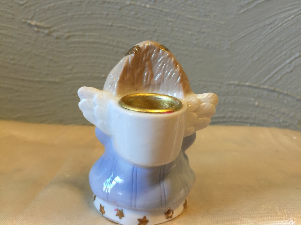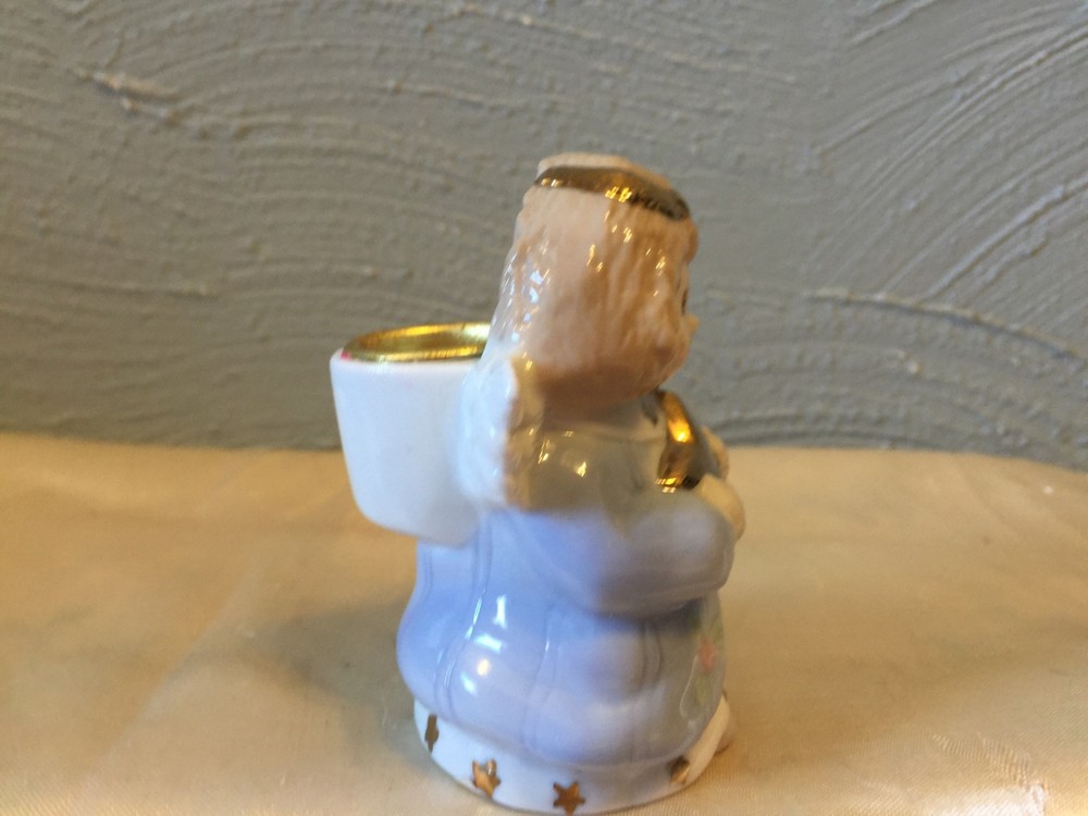 This adorable Abby pressed angel taper candle candle holders dance 3 1/4 inches high it is 2 1/2 inches wide and 2 1/2 inches