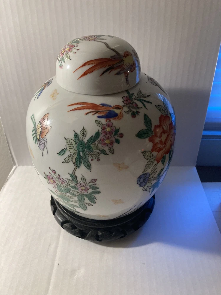 Porcelain Floral Oriental Ginger Jar W/ Stand 9 “ Without Stand