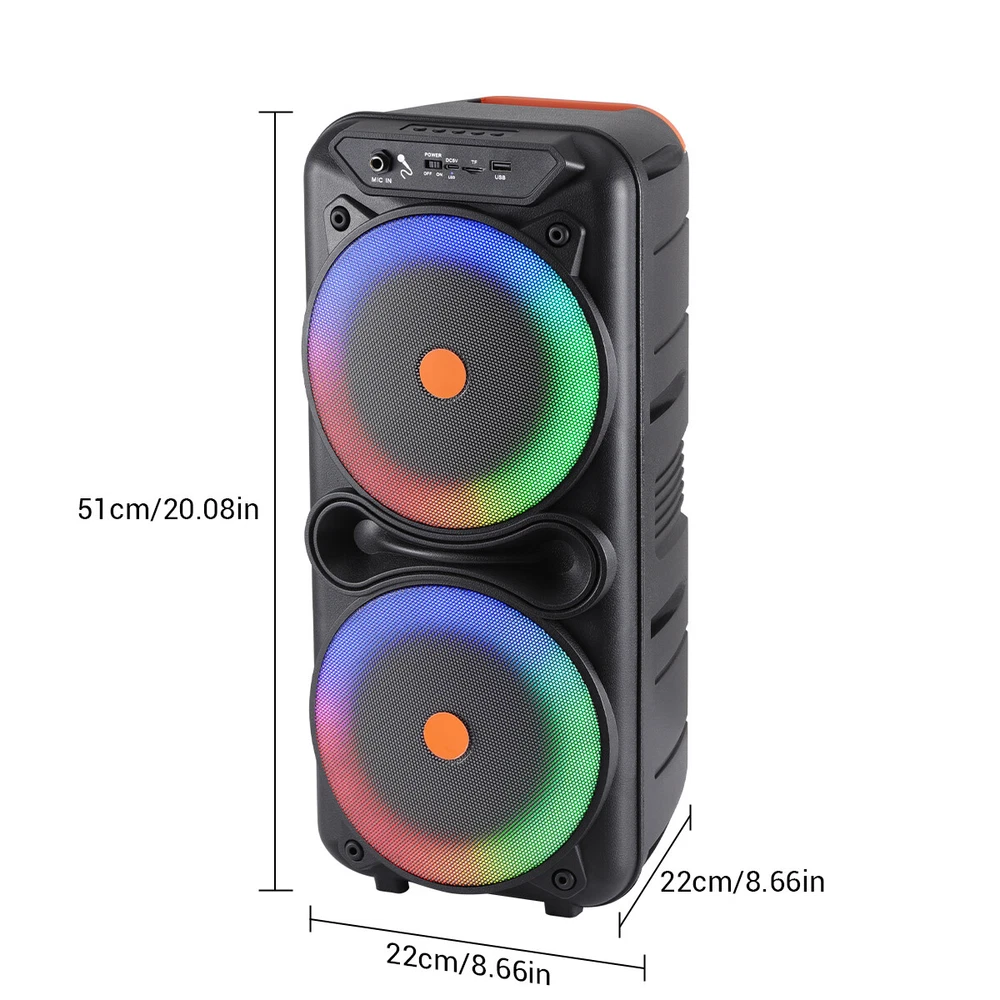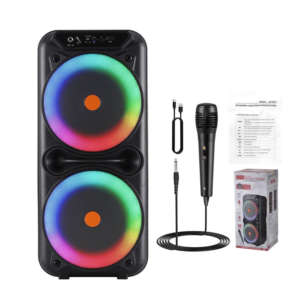 Portable Dual 8" Bluetooth Speaker Party +Mic Sub Woofer Heavy Bass Sound System Feature: Material: ABS Color: Black body Bluetooth name: QS-8511 Speaker: 8 "*2 Function: BT Bluetooth connection /USB/TF/FM/TWS Input voltage: DC5V The red light shows when charging, the red light goes off when it is full, about 5-6 hours after it is full, and the maximum battery life is about 1.5 hours TWS function: support 2 audio couplets, 1 mobile phone can only connect 1 audio (operation method can see the manual) Package Include: 1 X Dual 6.5-inch Bluetooth speakers (QS-6603) 1 X TYPE-C charging cable 1 X Wired microphone 1 X Instructions in English Contact us: Payment: Shipping: Warranty Return Contact us: We have always been trying to provide the best service and reliable products for every customer, however, accident may happen sometimes, please contact us to resolve any issue before leaving a negative feedback. Payment: 1. All payments must be prepaid before shipping. 2. We only accept payment via PayPal. Please kindly check if you can do the payment via PayPal before placing an order. Shipping: 1. Item will be shipped same business day if paid 4 pm EST 1 pm PDT (except weekends and holidays) and shipped from US. 2. Orders from the United States will all be shipped out via starnding shipping or economy shipping. The shipment usually takes 3-7 business days(Saturday and Sunday excluded), if you need the item urgently, please contact us for detail before purchase. Orders from overseas will be shipped via DHL Express, 3-5 business days. 3. Local pick up is not available. Warranty . The warranty shall not apply to the following circumstances: a) Damage caused by undue ware&tear, misuse, improper installation or operation, neglect, accidents. b) Damage caused by natural disaters, flood, fire, lightning or pollution. c) If item was opened, any parts removed or repaired by any unauthorized person. Return (1).We stand behind our items and offer 60 days warranty. All items are in brand new condition unless specified otherwise elsewhere in the description. (2).All returns - defective or otherwise - have to be preauthorized. Please contact us to get an authorization and returning address before sending the item back.If an item is returned because of an undeliverable shipping address, buyer agrees to pay the cost for re-shipment. (3).Please note that If the return/replacement is not a result of our mistake (not defective or wrong item), the buyer is responsible for return shipping, as well as a 20 percent restocking fee. (4).Replacement or refund will be made upon receipt of the returned item. If you do not want to wait for the replacement, you can just reorder one and then send the first one back for a refund.