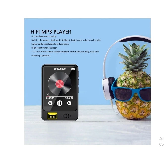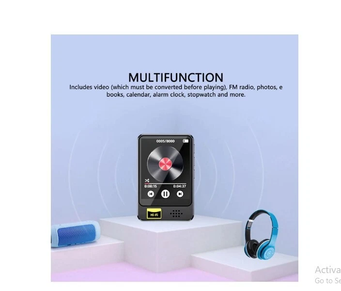 Product information Recording Function: With a bit rate of up to 1536kbps, the MP3 player allows for premium recordings. It also supports microphone input, line in recording, and even FM radio recording. Multifunctional: The MP3 player is not just for music. It also includes features such as video playback (conversion required prior to playback), FM radio, photo viewer, e book reader, calendar, alarm clock, stopwatch, and more. It is lightweight and portable, for studying, leisure, travel, sleep, reading, meetings, and sports activities. HiFi Lossless Sound Quality: With a built in HD speaker and HiFi sound technology, the MP3 player delivers superior sound quality. It also features a dedicated intelligent digital noise reduction chip for higher sound resolution, supporting various sound formats such as MP3, WMA, APE, FLAC, WAV, and AAC LC. 5.0: The MP3 music player features advanced AAC sound decoding, providing a stable connection, reducing power consumption, and seamlessly connecting with speakers, headphones, and car stereos. High Sensitivity Touch Screen: The 1.77 inch touch screen is scratch resistant, mirror like, and made of zinc alloy, ensuring effortless and smoothly operation.