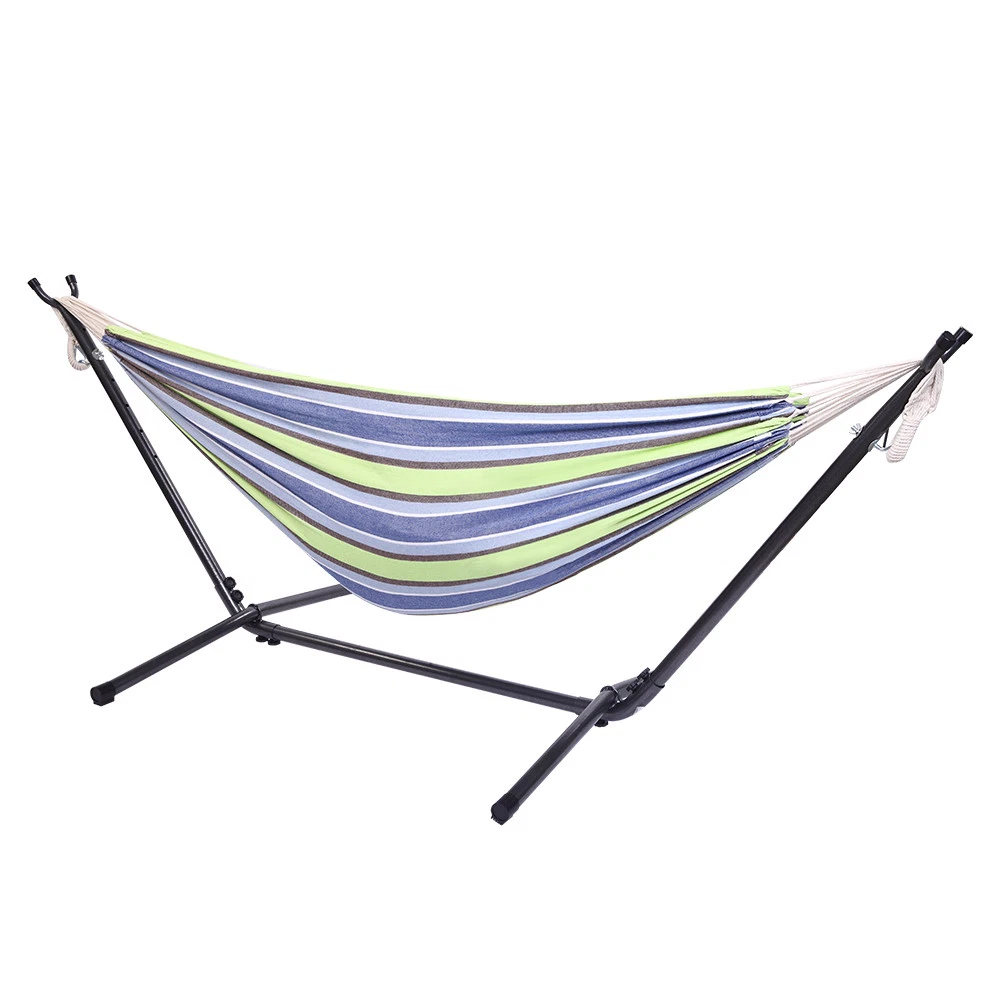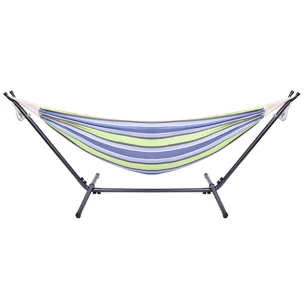 Warning: 1. Please make sure to lock all the plastic nuts and S hooks before using. 2. Never allow young children to use the hammock or stand unaccompanied by an adult. 3. DO NOT EXCEED THE LOAD LIMITATION OF 250LBS. (This load limitation has been tested for when you swing back and forth gently on the hammock. If you sit still, the load limitation is about 250 LBS.) Introductions: Enjoy yourself in our Portable Outdoor Polyester Hammock Set at any! It is composed of a hammock, a hammock stand and a portable handbag. Each item in this offer is made with premium material and delicate workmanship, with ensured quality and durability. Thus, you can carry it along easily for all kinds of outdoor activities. Also, the hammock could bear up to 135Kg weight to the maximum so that even two persons are allowed to lie on it freely without any worry and concern. What are you waiting for? The intoxicating leisure is waving its hands to you! Features: 1. With a hammock, a hammock stand and a handbag included 2. Compact, lightweight and portable for easy carrying and storage 3. Could bear up to 135Kg weight to the maximum 4. Comfortable and easy to use, great for all kinds of outdoor activities 5. Bring you an amazing leisure in the open air 6. Suitable for outdoor camping, travel, beach and indoor use Specifications: 1. Material: Polyester 2. Dimensions: (102.3 x 41.33 x 39.37)" / (260 x 105 x 100)cm (L x W x H) 3. Weight: 30.64 lbs / 13.9 kg 4. Color: Green 5. Weight Capacity: 250lb / 135kg Package Includes: 1 x Hammock 1 x Hammock Stand 1 x Handbag