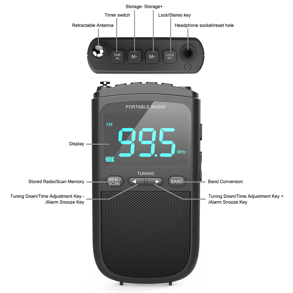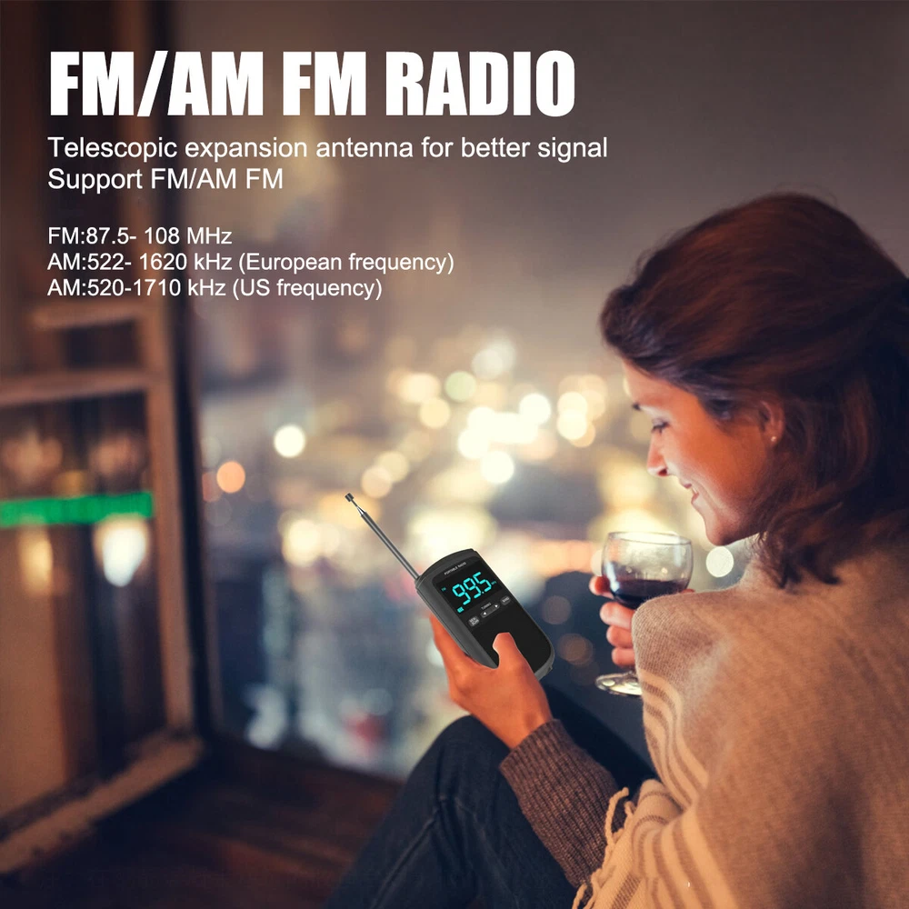 Product Description Mini Portable Pocket LCD Display Digital AM/FM Radio Battery Powered Speaker US Features: AM/FM Weather warning LED display screen Alarm clock Napping/Sleep Function Sleep mode Clock Automatic search and storage Stereo headphones Hanging rope Li-on rechargeable Low battery reminder Extended antenna Specification: Frequency modulation range: FM 87.5-108MHz AM 520-1710 KHZ(USA) 522-1620Khz(EU,JP) Working voltage: 5V Battery capacity: 900mAh Function: USB interface, one click restore, digital display, built-in speaker Radio tuning method: digital display Channel: monaural Channel selection methods: manual, automatic, memory Product weight: 90g/3.18oz Product size: 18X58X105mm/0.7x2.29x4.14in Packaging list: 1 * AM/FM Radio 1 * USB charging cable 1 * Reset tool needle 1 * User manual Payment Shipping Terms Returns Contact Us We accept PayPal only. If buyer want to delay the payment because of financial problem, please contact me by the ebay message within 3 days Payment via PayPal (PayPal accepts all major credits/debit cards and eCheque) ECheque payment will tak e 3-10 days to get clear, thus DELAYing the shipment. Handling time: 1 business day (Orders are not processed on weekends & holidays) Tracking information will be sent once item is shipped. Local pick-up is unavailable at the moment. For international shipping and shipping to Guam, Hawaii and Alaska, Please contact us before placing the order. Item is shipped to ebay address. Leaving correct address can minimize delay. For any issues with Defects, Return, Item Exchange request, please contact us first and send us a message first before opening any type of case or request. We devote ourselves making EVERY CUSTOMER in 100% Satisfactory and resolve any problem. We highly value and appreciate your business. Thank you. No returns will be accepted without an RMA number. Please contact us for the RMA number. Return is acceptable within 30 days of delivery. Return for replacement or money back is optional. Returned items must be in the brand new, unaltered and resalable condition. Seller is not responsible for any labor cost, expense in a dealer store, or damage due to wrong installation. Return is accepted within 14 days after the buyer's receiving the item. (Excluding contrived damagement or misusage).100% money-back Guaranteed! All product will be tested in 100% before delivery.If the item is defected by the processing of postage,Buyer has up to 14 days from date of receipt for exchange of a new one.All shipping charges for returned products are to be paid by the buyer,Please contact us for the return address All messages will be answered within 24 office hours. Please contact us either by clicking "contact seller" in the "purchase history" section or simply click "ask a question" at the bottom of this page. If you are unsatisfied with our item or service, please contact us before leaving any feedback. We are committed to resolve all issues in a friendly and satisfactory manner. We always reply to messages within 2 business days (off-duty at weekend). If you do not get a response from us, then please check your junk or spam mailbox. Payment We accept PayPal only. If buyer want to delay the payment because of financial problem, please contact me by the ebay message within 3 days Payment via PayPal (PayPal accepts all major credits/debit cards and eCheque) ECheque payment will tak e 3-10 days to get clear, thus DELAYing the shipment. Shipping Handling time: 1 business day (Orders are not processed on weekends & holidays) Tracking information will be sent once item is shipped. Local pick-up is unavailable at the moment. For international shipping and shipping to Guam, Hawaii and Alaska, Please contact us before placing the order. Item is shipped to ebay address. Leaving correct address can minimize delay. Terms For any issues with Defects, Return, Item Exchange request, please contact us first and send us a message first before opening any type of case or request. We devote ourselves making EVERY CUSTOMER in 100% Satisfactory and resolve any problem. We highly value and appreciate your business. Thank you. No returns will be accepted without an RMA number. Please contact us for the RMA number. Return is acceptable within 30 days of delivery. Return for replacement or money back is optional. Returned items must be in the brand new, unaltered and resalable condition. Seller is not responsible for any labor cost, expense in a dealer store, or damage due to wrong installation. Returns Return is accepted within 14 days after the buyer's receiving the item. (Excluding contrived damagement or misusage).100% money-back Guaranteed! All product will be tested in 100% before delivery.If the item is defected by the processing of postage,Buyer has up to 14 days from date of receipt for exchange of a new one.All shipping charges for returned products are to be paid by the buyer,Please contact us for the return address Contact Us All messages will be answered within 24 office hours. Please contact us either by clicking "contact seller" in the "purchase history" section or simply click "ask a question" at the bottom of this page. If you are unsatisfied with our item or service, please contact us before leaving any feedback. We are committed to resolve all issues in a friendly and satisfactory manner. We always reply to messages within 2 business days (off-duty at weekend). If you do not get a response from us, then please check your junk or spam mailbox. powered by