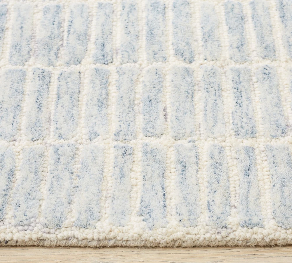 Pile Type: Cut & Loop Era: 21st Century (2000-Now) Department: Kids, Teens, Adults Material: 100% Wool Regional Design: Indian Pile Height: Medium Size: 8 x 10 ft Brand: Pottery Barn Room: Any Room, Basement, Bedroom, Conservatory, Dining Room, Foyer, Garage, Guestroom, Hallway, Home Office/Study, Kitchen, Living Room, Lounge, Nursery, Trailer Original/Reproduction: Original Pattern: Geometric Color: Blue Shape: Rectangle Item Length: 10ft Time Period Manufactured: 2020-Now Weave: Hand-Tufted Item Thickness: 0.25ft Production Technique: Tufted Handmade: Yes Style: Contemporary Country/Region of Manufacture: India Type: Area Rug Item Width: 8ft