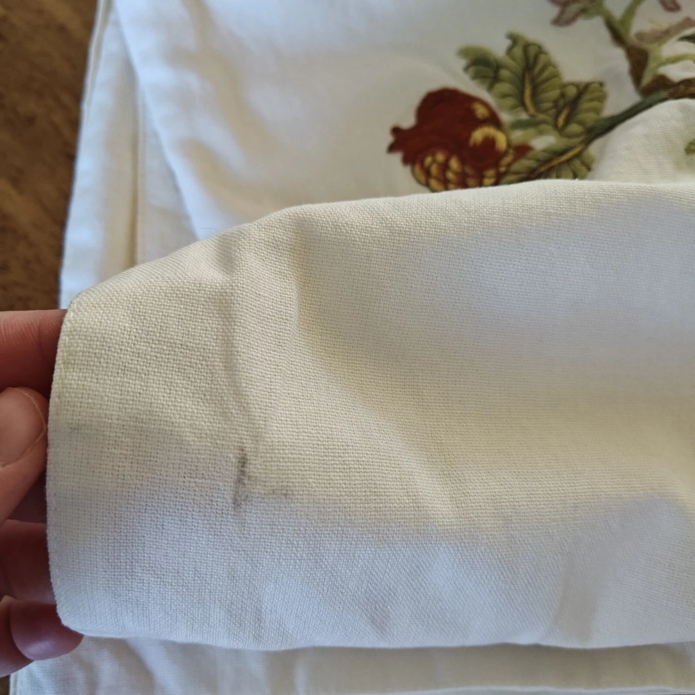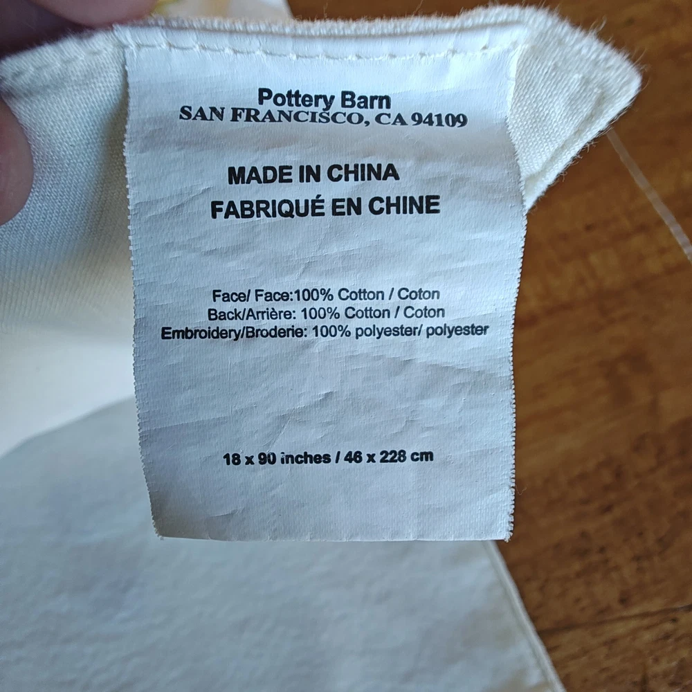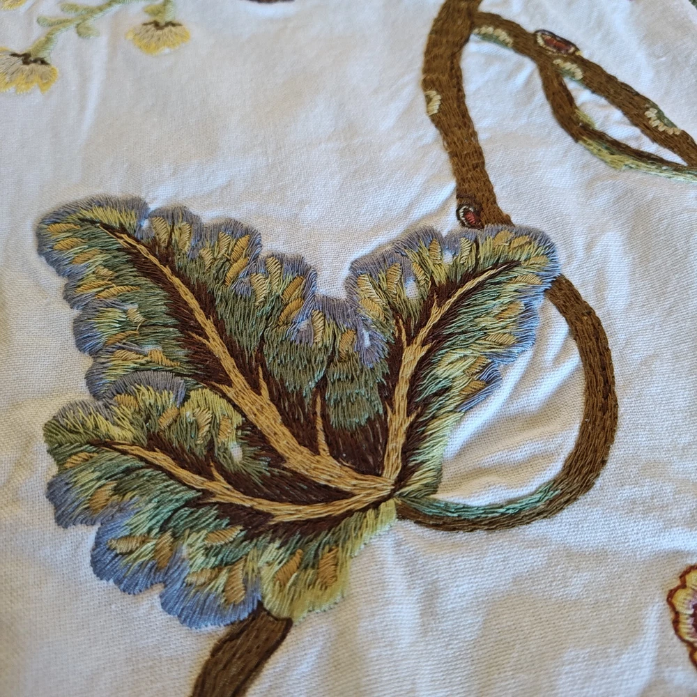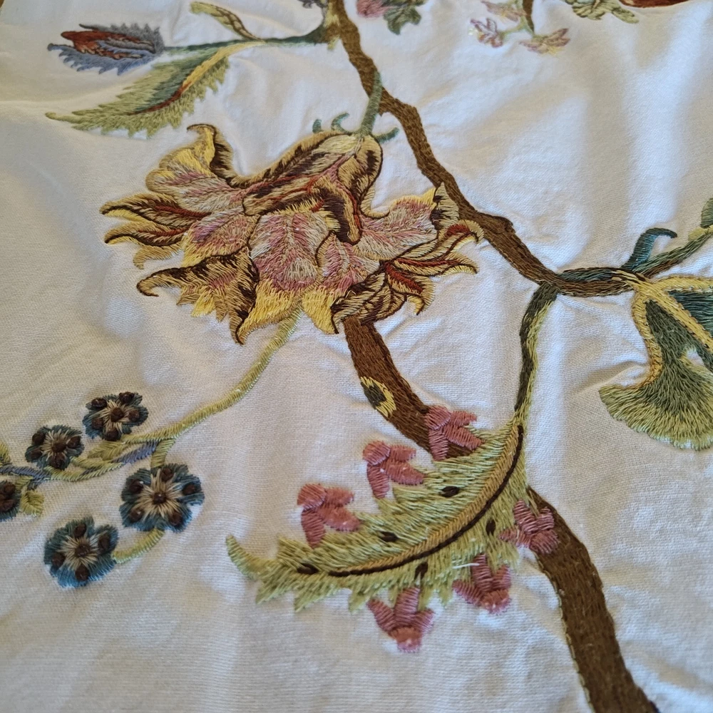 Pottery Barn Table Runner Crewel Embroidered Floral Vine 18"x 90" W/ 6 Napkins See in the photos there is one grey mark on the runner. Otherwise, clean and in gently used condition! The napkins are in great condition with some signs of use but overall very clean. Thanks for looking!